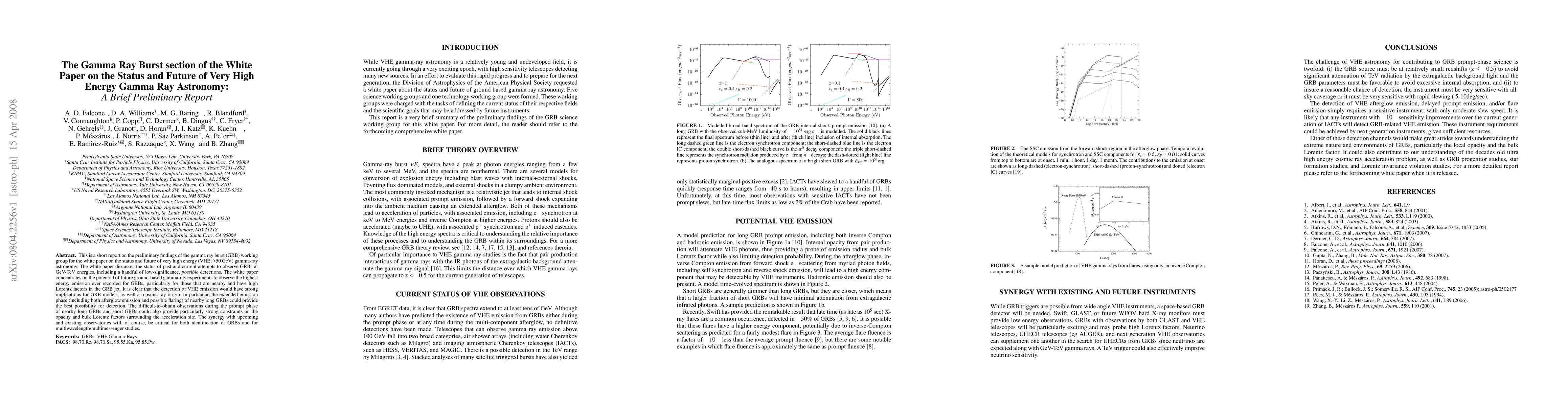 This is a short report on the preliminary findings of the gamma ray burst (GRB) working group for the white paper on the status and future of very high energy (VHE; >50 GeV) gamma-ray astronomy. The white paper discusses the status of past and current attempts to observe GRBs at GeV-TeV energies, including a handful of low-significance, possible detections. The white paper concentrates on the potential of future ground-based gamma-ray experiments to observe the highest energy emission ever recorded for GRBs, particularly for those that are nearby and have high Lorentz factors in the GRB jet. It is clear that the detection of VHE emission would have strong implications for GRB models, as well as cosmic ray origin. In particular, the extended emission phase (including both afterglow emission and possible flaring) of nearby long GRBs could provide the best possibility for detection. The difficult-to-obtain observations during the prompt phase of nearby long GRBs and short GRBs could also provide particularly strong constraints on the opacity and bulk Lorentz factors surrounding the acceleration site. The synergy with upcoming and existing observatories will, of course, be critical for both identification of GRBs and for multiwavelength/multimessenger studies.