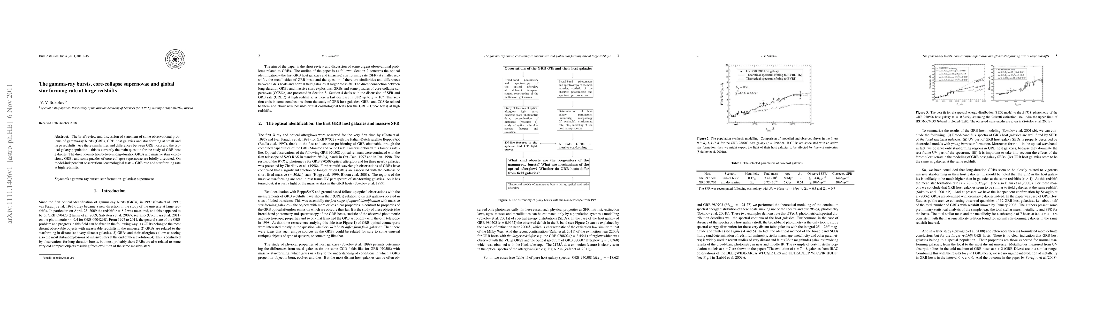 The brief review and discussion of statement of some observational problems of gamma-ray bursts (GRB), GRB host galaxies and star forming at small and large redshifts: Are there similarities and differences between GRB hosts and the typical galaxy population - this is currently the main question for the study of GRB host galaxies. The direct connection between long-duration GRBs and massive stars explosions, GRBs and some puzzles of core-collapse supernovae are briefly discussed. On model-independent observational cosmological tests - GRB rate and star forming rate at high redshifts.