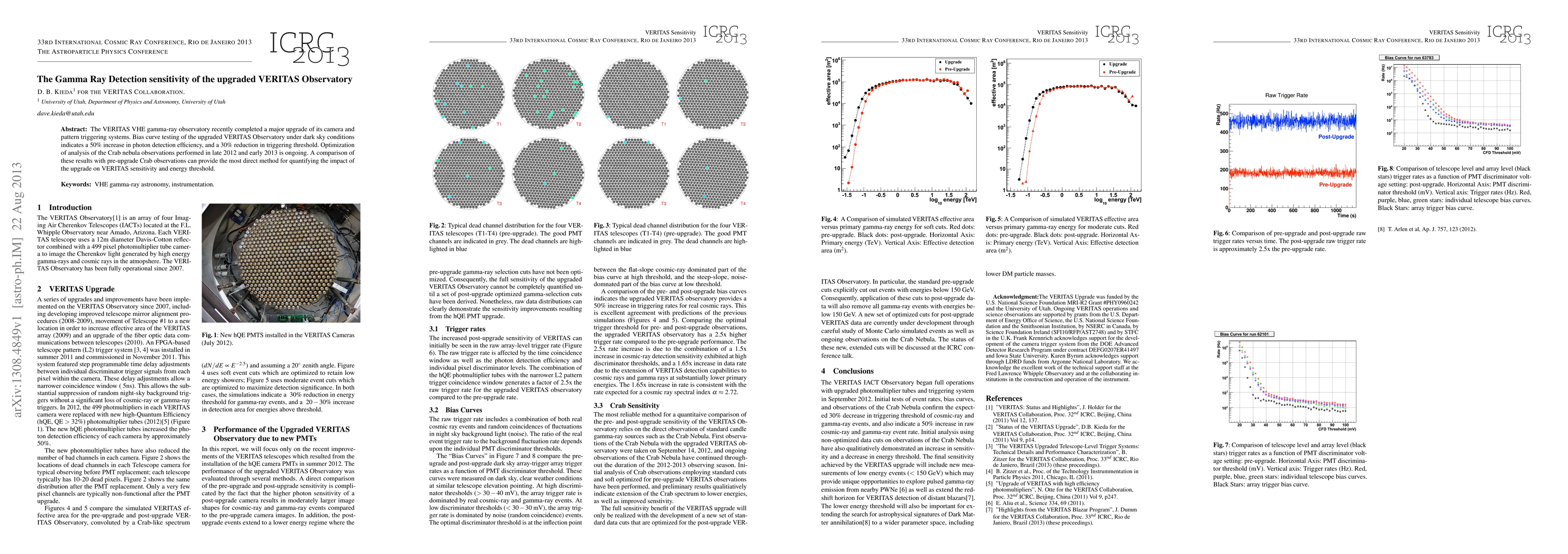 The VERITAS VHE gamma-ray observatory recently completed a major upgrade of its camera and pattern triggering systems. Bias curve testing of the upgraded VERITAS Observatory under dark sky conditions indicates a 50% increase in photon detection efficiency, and a 30% reduction in triggering threshold. Optimization of analysis of the Crab nebula observations performed in late 2012 and early 2013 is ongoing. A comparison of these results with pre-upgrade Crab observations can provide the most direct method for quantifying the impact of the upgrade on VERITAS sensitivity and energy threshold.
