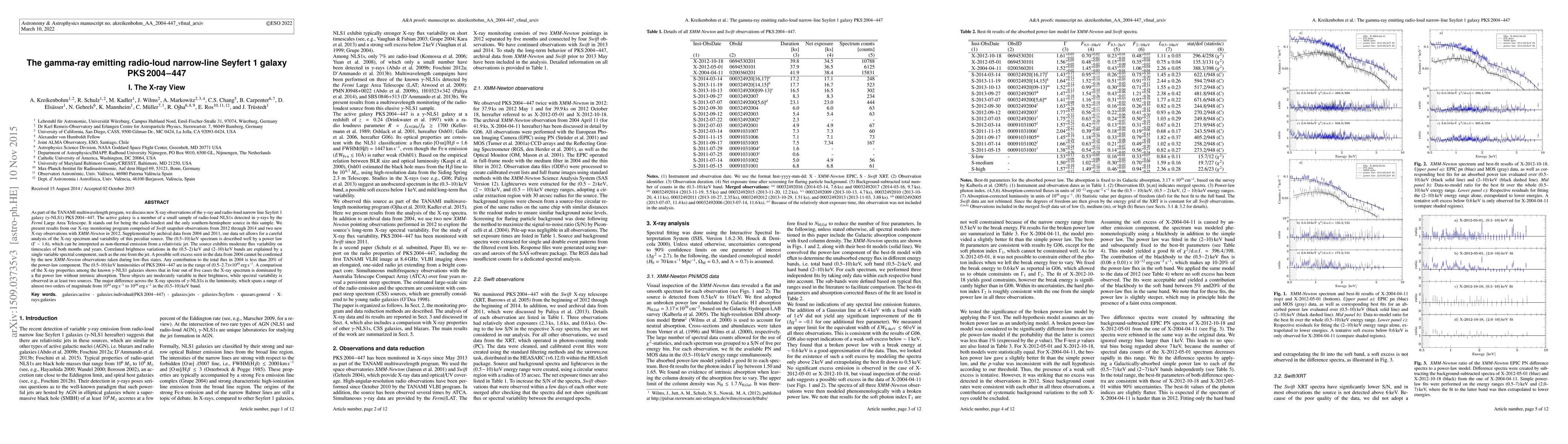 As part of the TANAMI multiwavelength progam, we discuss new X-ray observations of the $\gamma$-ray and radio-loud Narrow Line Seyfert galaxy ($\gamma$-NLS1) PKS 2004-447. The active galaxy is a member of a small sample of radio-loud NLS1s detected in $\gamma$-rays by the Fermi Large Area Telescope. It is the radio-loudest and only southern-hemisphere source in this sample. We present results from our X-ray monitoring program comprised of Swift snapshot observations from 2012 through 2014 and two new X-ray observations with XMM-Newton in 2012. We analyze the X-ray spectrum and variability of this peculiar source using supplementary archival data from 2004 and 2011. The (0.5-10) keV spectrum is well described by a flat power law, which can be interpreted as non-thermal emission from a relativistic jet. The source exhibits moderate flux variability on timescales of both months and years. Correlated brightness variations in the (0.5-2) keV and (2-10) keV bands are explained by a single variable spectral component, such as the jet. A possible soft excess seen in the data from 2004 cannot be confirmed by the new \xmm{} observations in 2012. Any contribution to the total flux in 2004 is less than $20\%$ of the power-law component. The (0.5-10) keV luminosities of PKS 2004-447 are in the range of (0.5--2.7)$\times10^{44}\,\mathrm{erg\,s}^{-1}$. A comparison of the X-ray properties among the known $\gamma$-NLS1 galaxies shows that X-ray spectrum is typically dominated by a flat power law without intrinsic absorption. These objects are moderately variable in their brightness, while spectral variability is observed in at least two sources. The major difference across the X-ray spectra of $\gamma$-NLS1s is the luminosity, which spans a range of almost two orders of magnitude, from $10^{44}\,\mathrm{erg\,s}^{-1}$ to $10^{46}\,\mathrm{erg\,s}^{-1}$ in the (0.5-10) keV band.