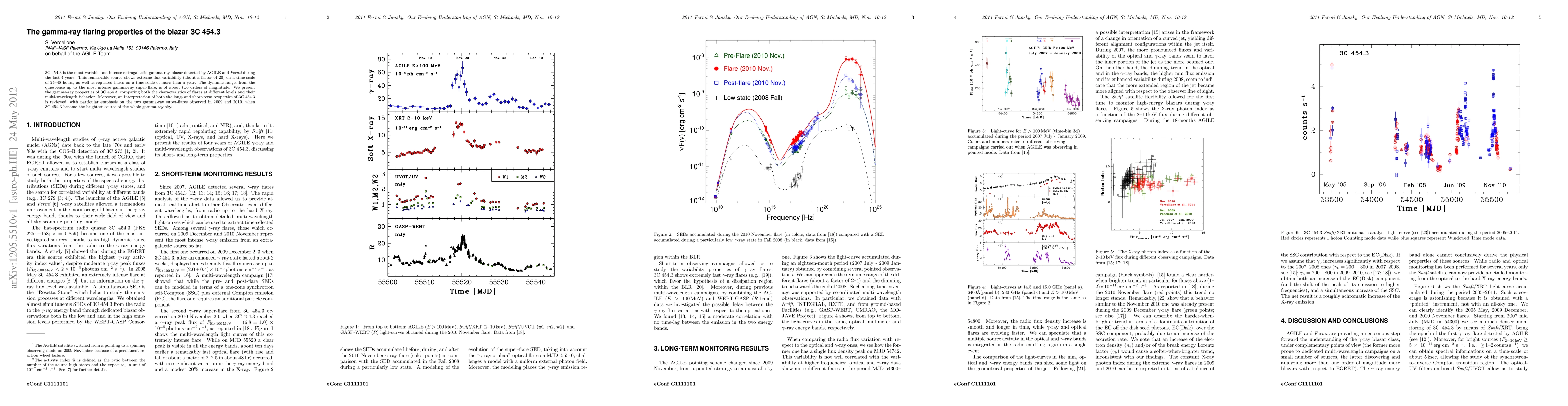 3C 454.3 is the most variable and intense extragalactic gamma-ray blazar detected by AGILE and Fermi during the last 4 years. This remarkable source shows extreme flux variability (about a fact or of 20) on a time-scale of 24-48 hours, as well as repeated flares on a time-scale of more than a year. The dynamic range, from the quiescence up to the most intense gamma-ray super-flare, is of about two orders of magnitude. We present the gamma-ray properties of 3C 454.3, comparing both the characteristics of flares at different levels and their multi-wavelength behavior. Moreover, an interpretation of both the long- and short-term properties of 3C 454.3 is reviewed, with particular emphasis on the two gamma-ray super-flares observed in 2009 and 2010, when 3C 454.3 became the brightest source of the whole gamma-ray sky.