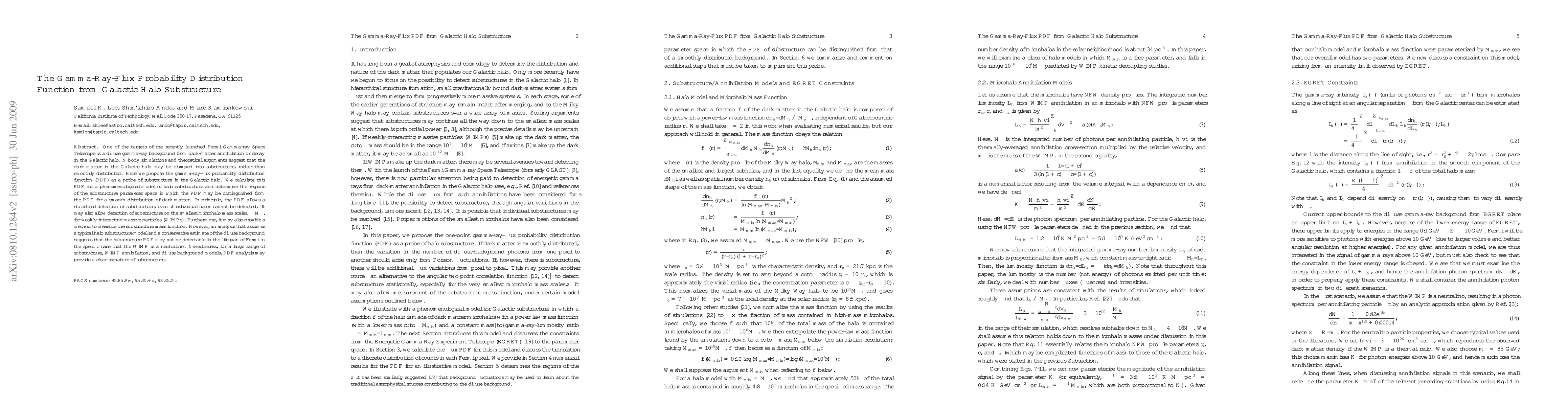This paper proposes the gamma-ray-flux probability distribution function (PDF) as a method to detect substructure in the Galactic halo, potentially revealing clumped dark matter distributions. While it suggests that the PDF may not be detectable for neutralinos within Fermi's lifespan, it remains a promising tool for identifying dark matter substructure across various models.