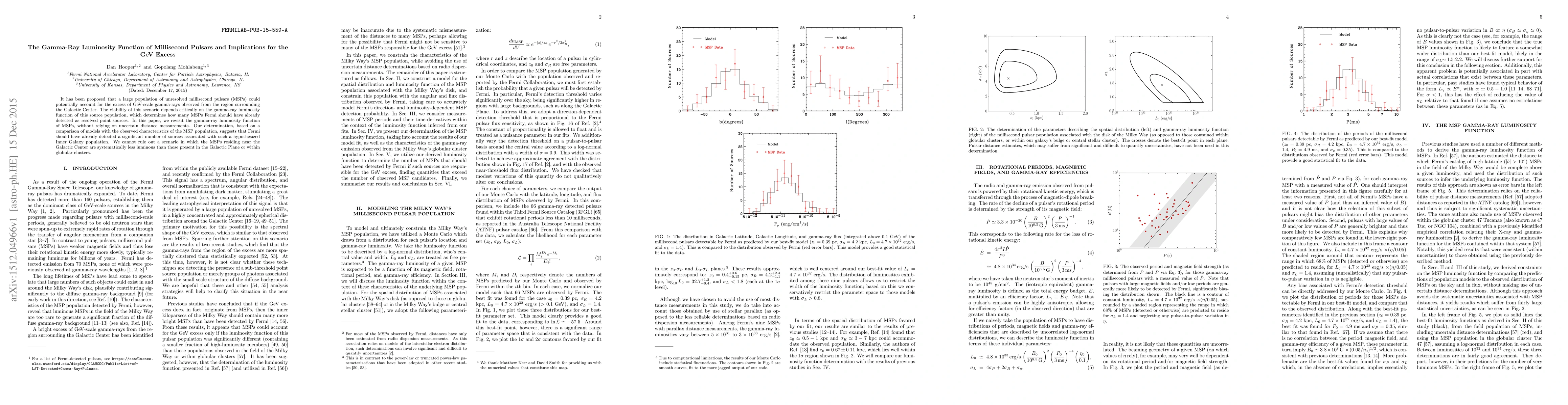 This paper examines the gamma-ray luminosity function of millisecond pulsars (MSPs) to assess their potential contribution to the GeV gamma-ray excess near the Galactic Center. The findings suggest that Fermi should have detected more MSPs than currently observed, indicating possible systematic differences in luminosity between MSPs near the Galactic Center and those elsewhere.