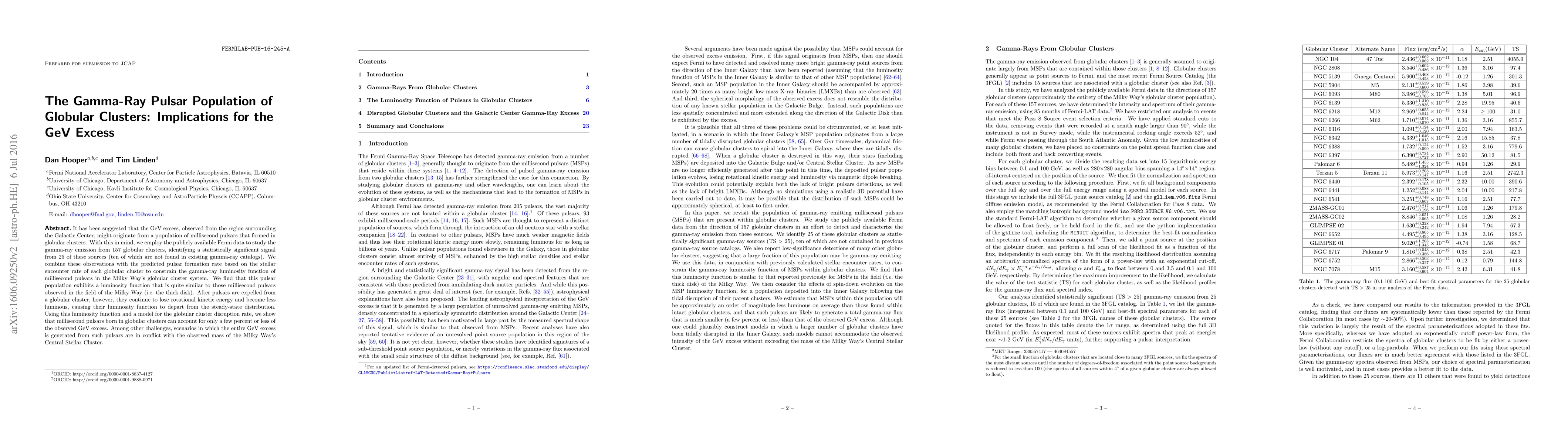 This study uses Fermi data to investigate gamma-ray emissions from 157 globular clusters, identifying a significant signal from 25 clusters, including ten previously uncataloged. The findings suggest that millisecond pulsars in globular clusters contribute only a small fraction to the observed GeV excess, as their luminosity function diverges from steady-state after ejection, and their overall contribution conflicts with the mass of the Galactic Center.