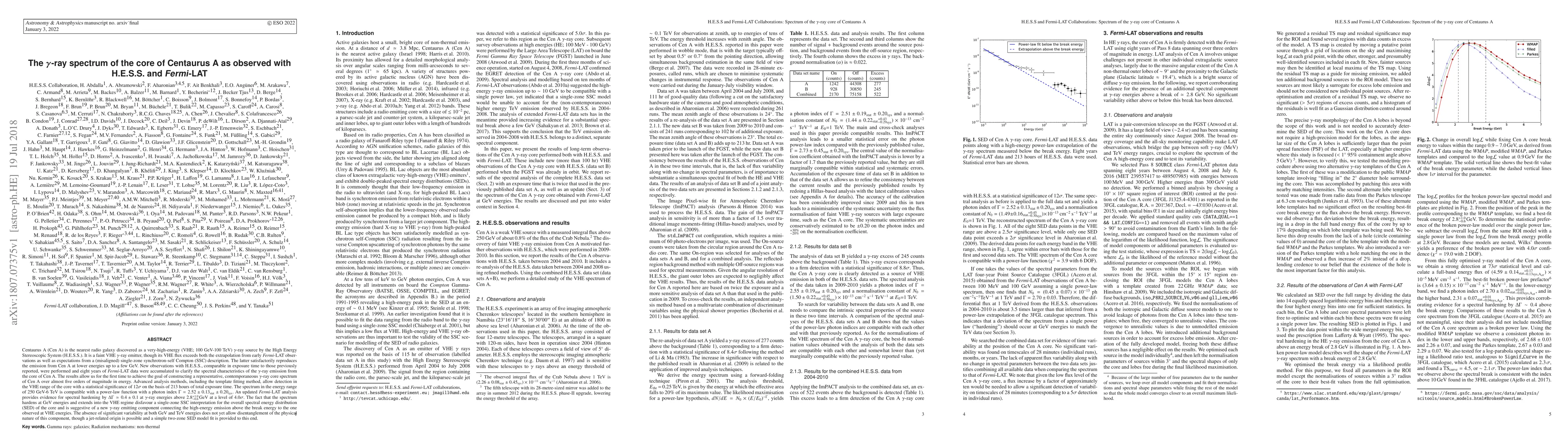 This paper presents new observations of Centaurus A's core $\gamma$-ray spectrum using H.E.S.S. and Fermi-LAT, revealing a spectrum compatible with a power-law function and spectral hardening above 2.8 GeV. The findings suggest the presence of a new $\gamma$-ray emitting component beyond a single-zone synchrotron-self Compton model.