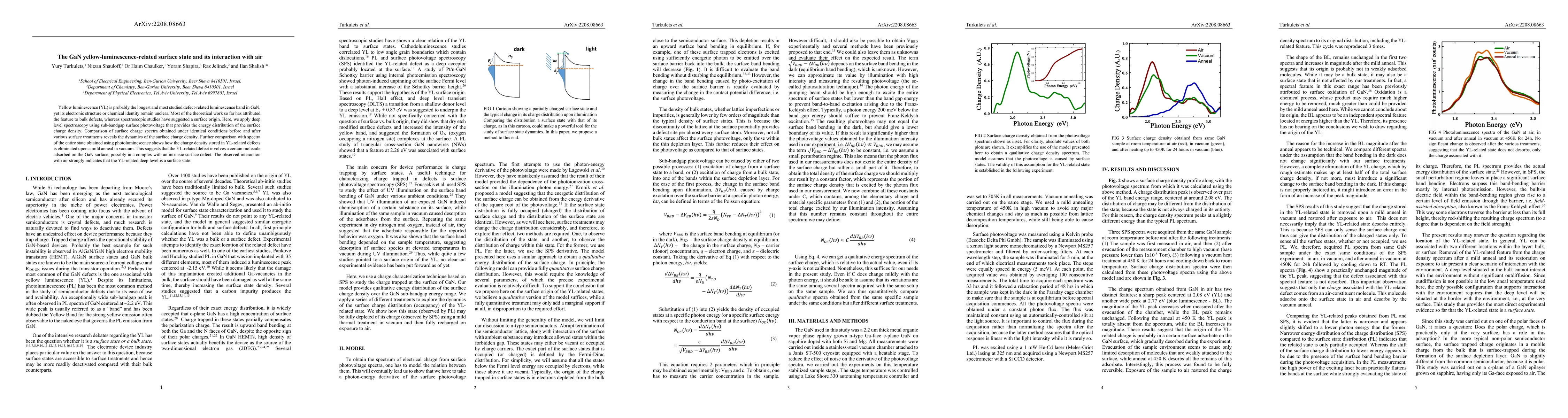 This paper investigates the yellow luminescence (YL) in GaN, attributing it to a surface state rather than bulk defects. Using deep level spectroscopy, it reveals that YL-related defects involve adsorbed molecules interacting with intrinsic surface defects, which are eliminated upon annealing, suggesting a strong interaction with air.