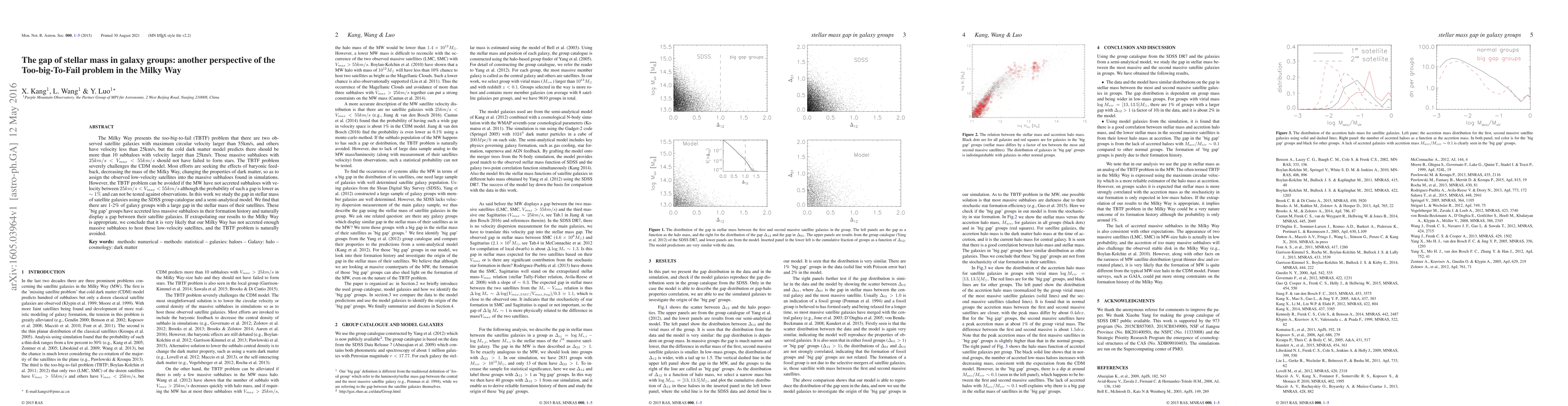 This paper investigates the "too-big-to-fail" problem in the Milky Way by studying the stellar mass gap in satellite galaxies using the SDSS group catalogue and a semi-analytical model. It finds that 1-2% of galaxy groups exhibit a significant gap in stellar mass, suggesting they have accreted fewer massive subhaloes, which may naturally resolve the TBTF problem for the Milky Way.