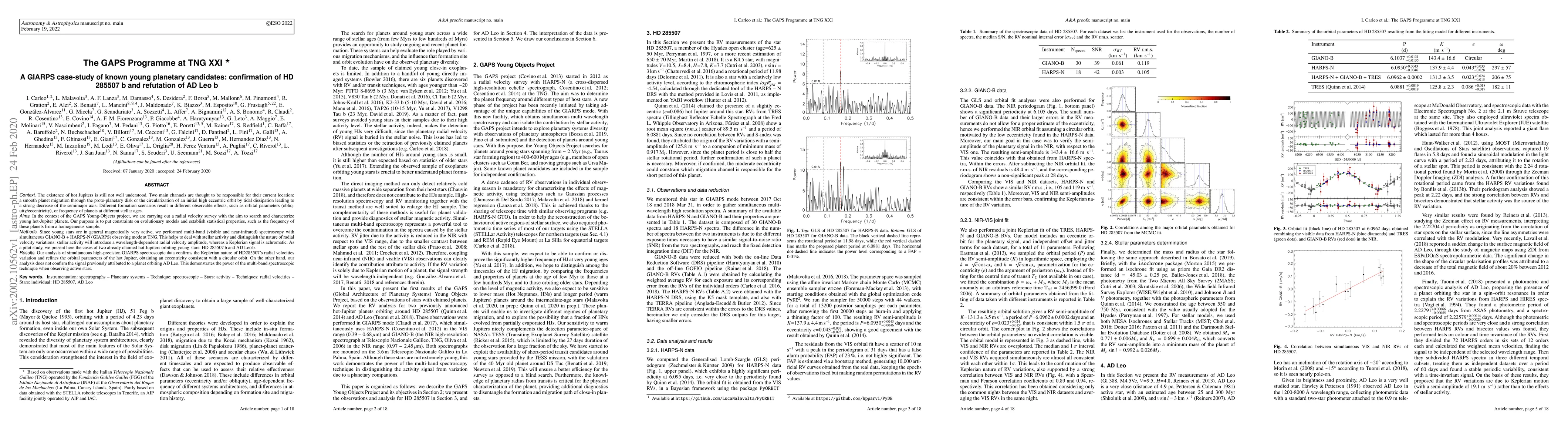 The GAPS Programme at TNG confirms the presence of the hot Jupiter HD 285507 b while refuting the existence of AD Leo b, using high-precision GIARPS spectroscopy to distinguish between stellar activity and planetary signals. This study highlights the technique's effectiveness in characterizing young planetary candidates.