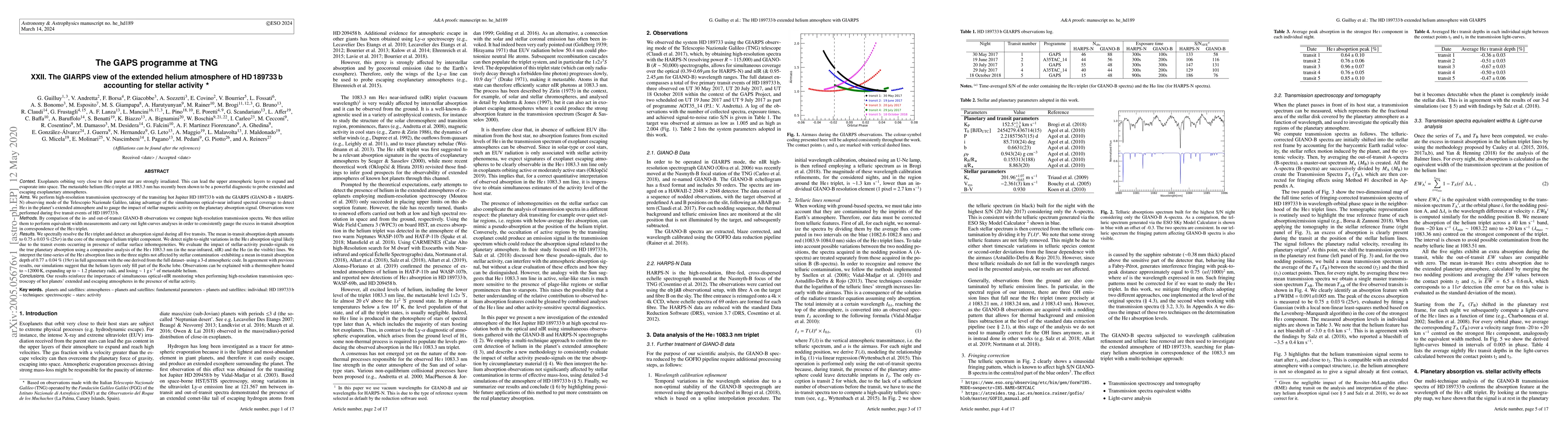This study uses high-resolution spectroscopy with GIARPS to detect metastable helium in the extended atmosphere of HD189733b, revealing a mean in-transit absorption depth of 0.75%. Night-to-night variations in the HeI signal are likely due to stellar activity, which can be distinguished from planetary signals using H$\alpha$ lines.