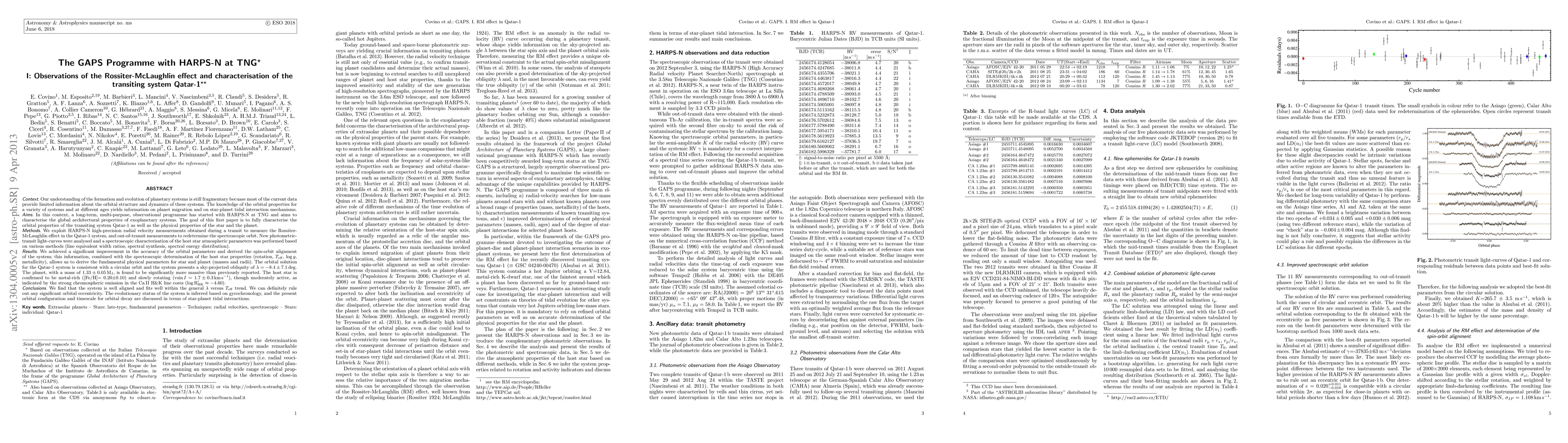 A long-term multi-purpose observational programme has started with HARPS-N@TNG aimed to characterise the global architectural properties of exoplanetary systems. In this first paper we fully characterise the transiting system Qatar-1. We exploit HARPS-N high-precision radial velocity measurements obtained during a transit to measure the Rossiter-McLaughlin effect in the Qatar-1 system, and out-of-transit measurements to redetermine the spectroscopic orbit. New photometric transit light-curves are analysed and a spectroscopic characterisation of the host star atmospheric parameters is performed based on various methods (line equivalent width ratios, spectral synthesis, spectral energy distribution). We achieved a significant improvement in the accuracy of the orbital parameters and derived the spin-orbit alignment of the system; this information, combined with the spectroscopic determination of the host star properties, allows us to derive the fundamental physical parameters for star and planet (masses and radii). The orbital solution for the Qatar-1 system is consistent with a circular orbit and the system presents a sky-projected obliquity of lambda = -8.4+-7.1 deg. The planet, with a mass of 1.33+-0.05 M_J, is found to be significantly more massive than previously reported. The host star is confirmed to be metal-rich ([Fe/H]= 0.20+-0.10) and slowly rotating (vsinI = 1.7+-0.3 km/s), though moderately active, as indicated by strong chromospheric emission in the Ca II H&K line cores (logR'_HK about -4.60). The system is well aligned and fits well within the general lambda vs Teff trend. We definitely rule out any significant orbital eccentricity. The evolutionary status of the system is inferred based on gyrochronology, and the present orbital configuration and timescale for orbital decay are discussed in terms of star-planet tidal interactions.