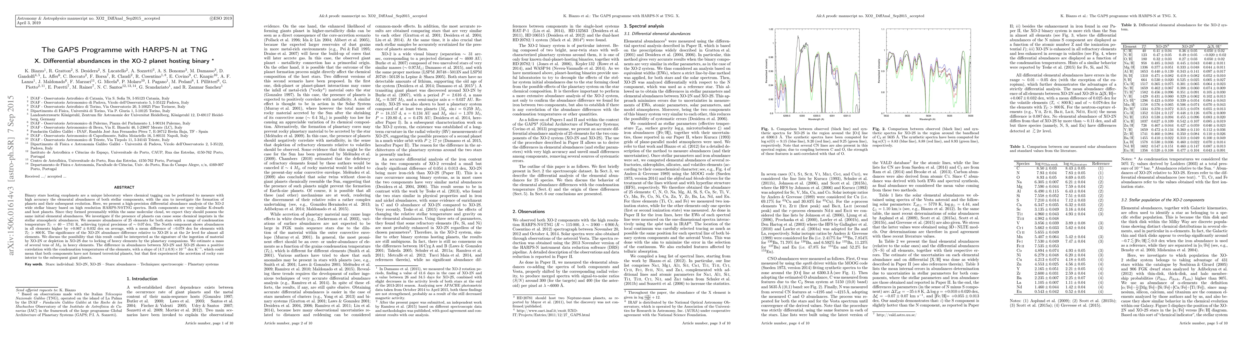 Binary stars hosting exoplanets are a unique laboratory where chemical tagging can be performed to measure with high accuracy the elemental abundances of both stellar components, with the aim to investigate the formation of planets and their subsequent evolution. Here, we present a high-precision differential abundance analysis of the XO-2 wide stellar binary based on high resolution HARPS-N@TNG spectra. Both components are very similar K-dwarfs and host planets. Since they formed presumably within the same molecular cloud, we expect they should possess the same initial elemental abundances. We investigate if the presence of planets can cause some chemical imprints in the stellar atmospheric abundances. We measure abundances of 25 elements for both stars with a range of condensation temperature $T_{\rm C}=40-1741$ K, achieving typical precisions of $\sim 0.07$ dex. The North component shows abundances in all elements higher by $+0.067 \pm 0.032$ dex on average, with a mean difference of +0.078 dex for elements with $T_{\rm C} > 800$ K. The significance of the XO-2N abundance difference relative to XO-2S is at the $2\sigma$ level for almost all elements. We discuss the possibility that this result could be interpreted as the signature of the ingestion of material by XO-2N or depletion in XO-2S due to locking of heavy elements by the planetary companions. We estimate a mass of several tens of $M_{\oplus}$ in heavy elements. The difference in abundances between XO-2N and XO-2S shows a positive correlation with the condensation temperatures of the elements, with a slope of $(4.7 \pm 0.9) \times 10^{-5}$ dex K$^{-1}$, which could mean that both components have not formed terrestrial planets, but that first experienced the accretion of rocky core interior to the subsequent giant planets.