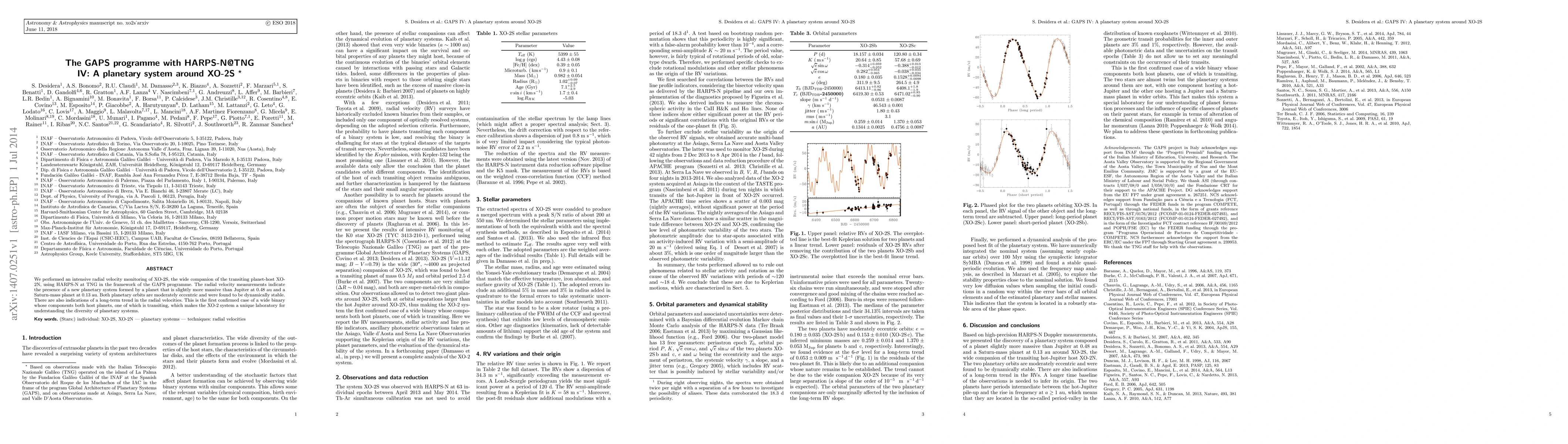 The study presents a detailed analysis of radial velocity data using the HARPS-N spectrograph, demonstrating the detection and characterization of a planetary system around XO-2S.