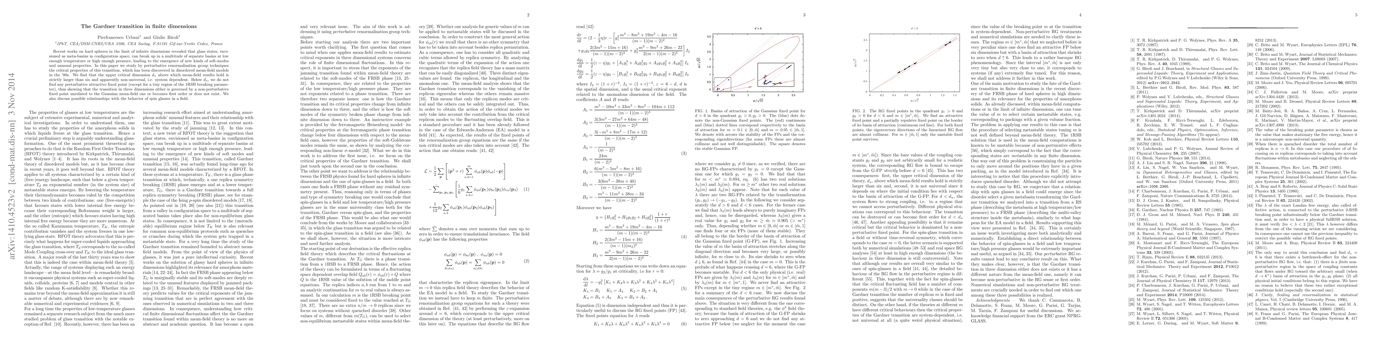 This paper investigates the Gardner transition in finite dimensions using perturbative renormalization group techniques, finding that the upper critical dimension $d_u$ is strictly larger than six and non-universal. It concludes that below $d_u$, the transition lacks a perturbative attractive fixed point, suggesting a non-perturbative or first-order transition in three dimensions.