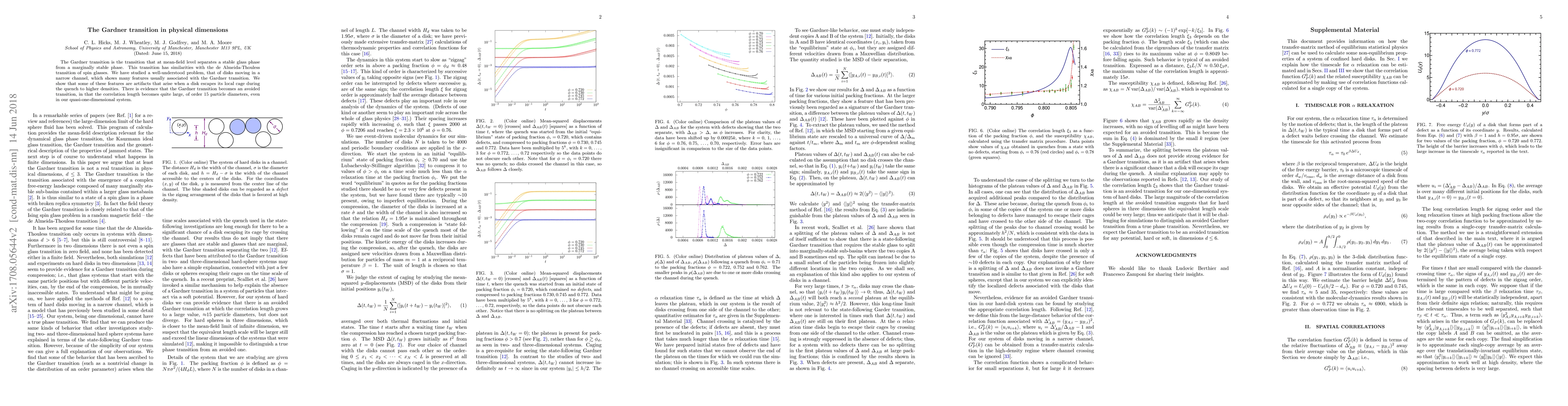 The Gardner transition distinguishes a stable glass phase from a marginally stable phase in mean-field models, akin to the de Almeida-Thouless transition in spin glasses. The study of disks in a narrow channel reveals features of this transition, but some are artifacts from disk escape during density increase; the transition may be avoided with a large correlation length.