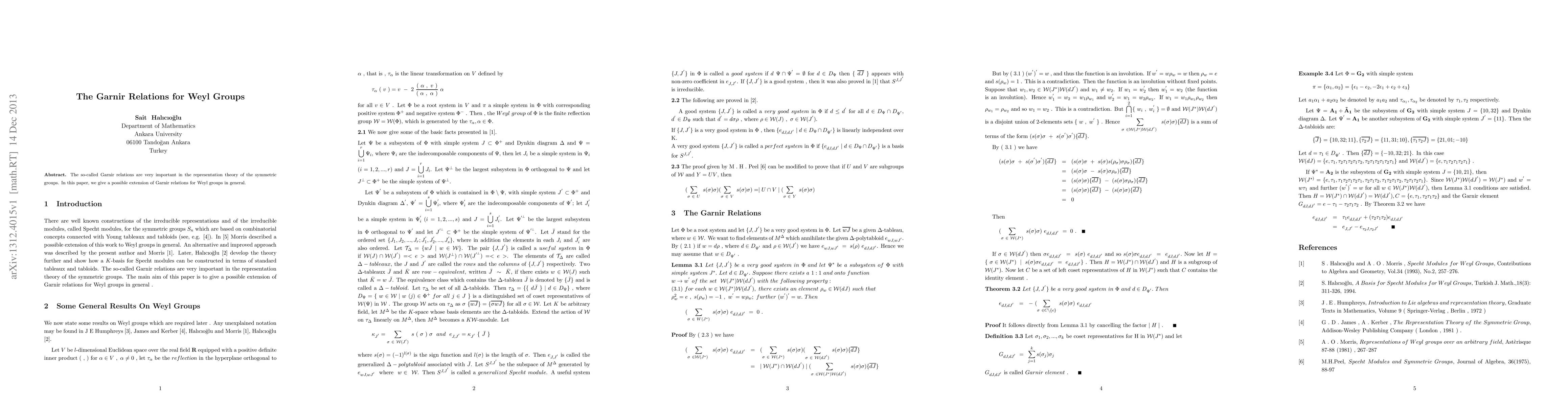 The so-called Garnir relations are very important in the representation theory of the symmetric groups. In this paper, we give a possible extension of Garnir relations for Weyl groups in general.