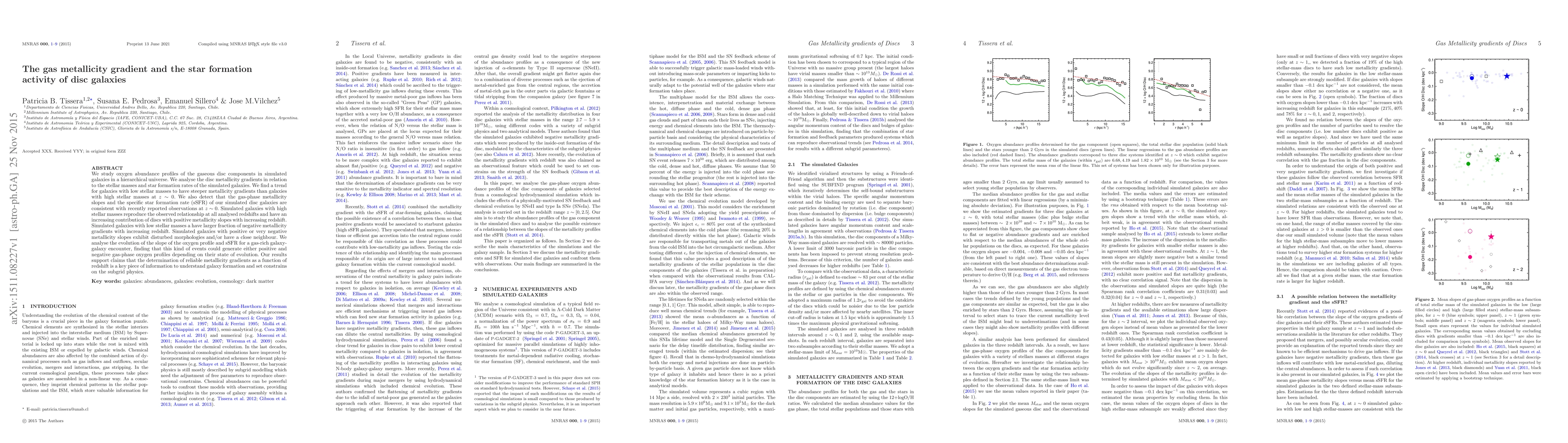 This paper investigates the oxygen abundance profiles in simulated disc galaxies, finding that low-mass galaxies exhibit steeper metallicity gradients compared to high-mass galaxies. It also shows that the relationship between gas-phase metallicity and star formation activity correlates with observations at z ~0, supporting the importance of metallicity gradients in understanding galaxy formation and evolution.
