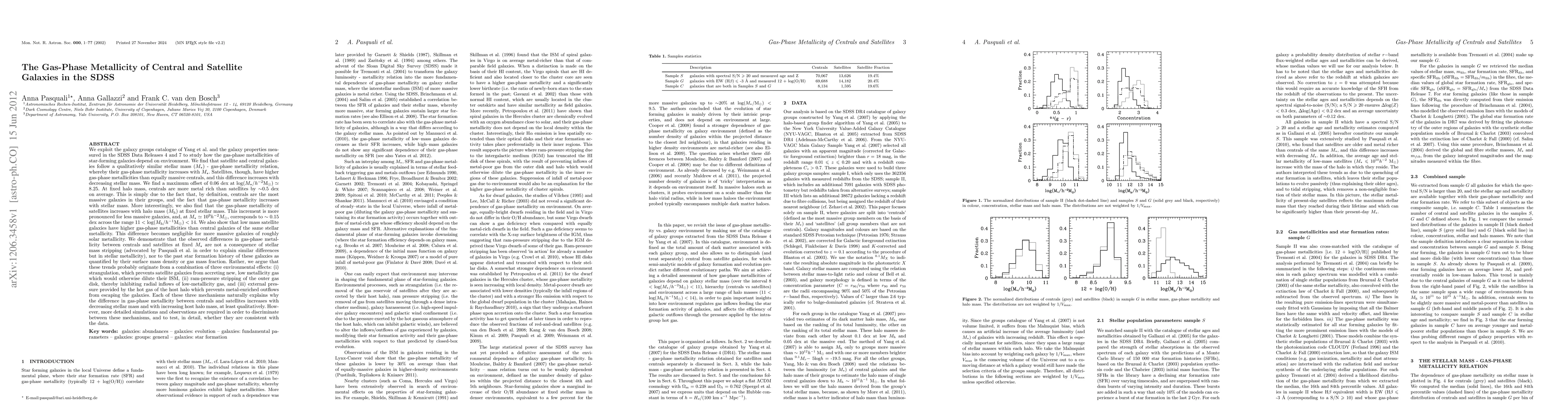 This study investigates the gas-phase metallicities of central and satellite galaxies using the SDSS galaxy groups catalogue, finding that satellite galaxies exhibit higher metallicities than central galaxies of the same stellar mass, with this difference increasing for less massive galaxies. The observed differences are attributed to environmental effects such as strangulation, ram-pressure stripping, and external pressure from the host halo.