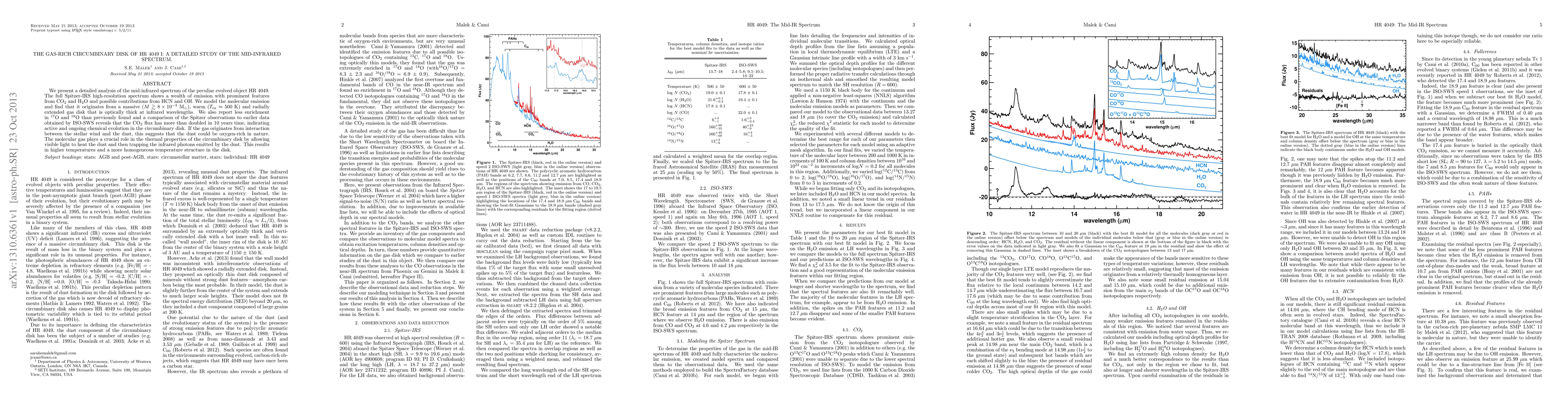 The study of HR 4049's mid-infrared spectrum reveals a massive, warm, and radially extended gas disk with significant CO2 and H2O emission. The disk, optically thick in infrared, has experienced active chemical evolution over a decade, with CO2 flux more than doubling. This disk, possibly originating from stellar wind-dust interaction, plays a crucial role in heating and maintaining a homogeneous temperature structure in the circumbinary disk.