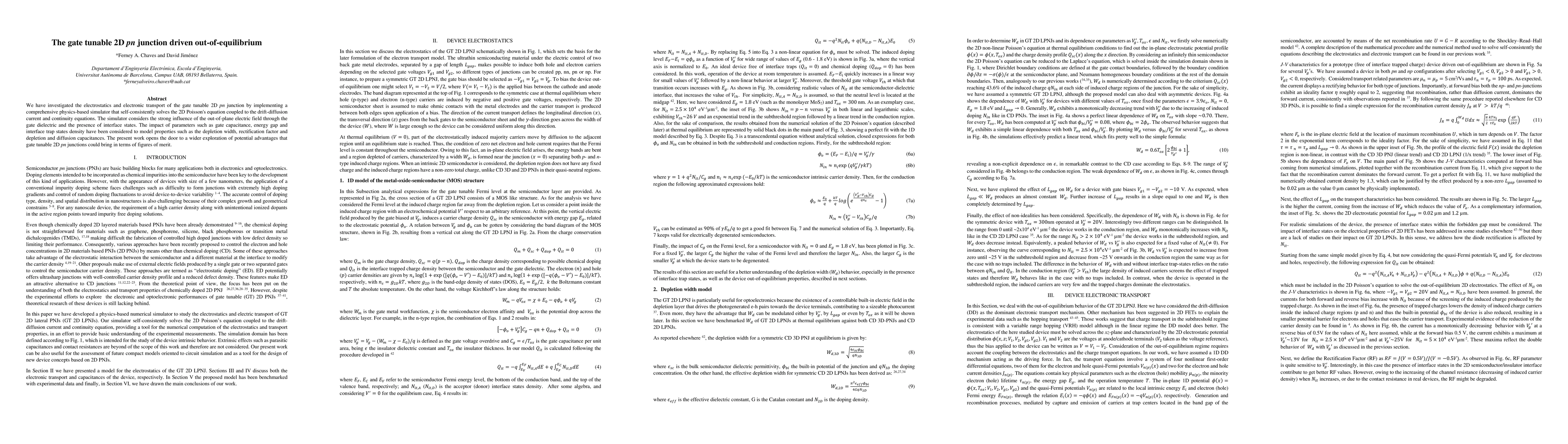 This research investigates the electrostatics and electronic transport of gate-tunable 2D pn junctions using a physics-based simulator that models the 2D Poisson's equation and drift-diffusion current. The study explores the impact of gate capacitance, energy gap, and interface trap states on properties like depletion width and capacitance, highlighting potential advantages of these junctions.