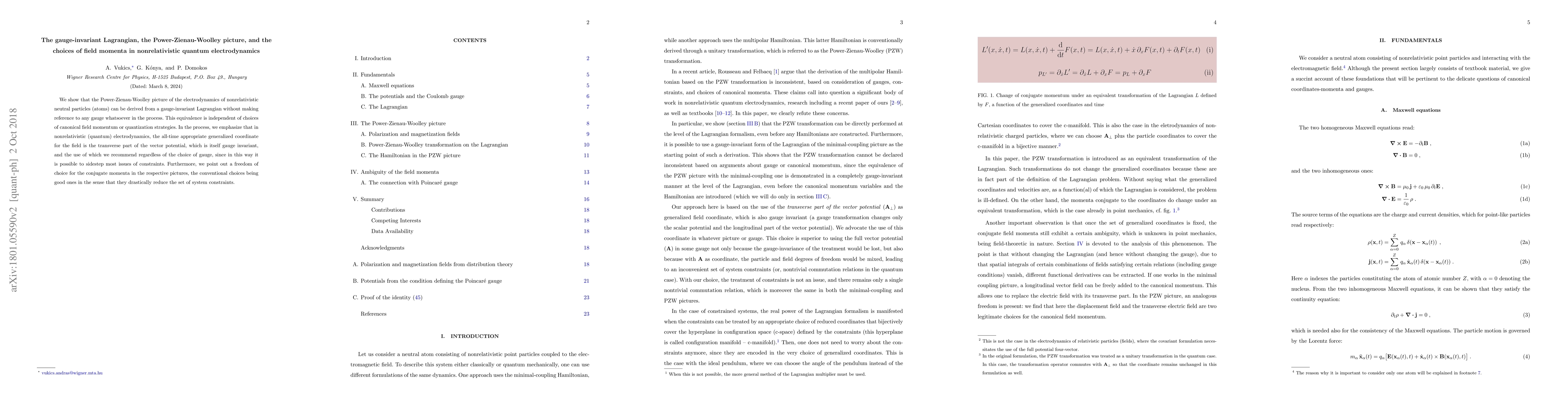 We show that the Power-Zienau-Woolley picture of the electrodynamics of nonrelativistic neutral particles (atoms) can be derived from a gauge-invariant Lagrangian without making reference to any gauge whatsoever in the process. This equivalence is independent of choices of canonical field momentum or quantization strategies. In the process, we emphasize that in nonrelativistic (quantum) electrodynamics, the all-time appropriate generalized coordinate for the field is the transverse part of the vector potential, which is itself gauge invariant, and the use of which we recommend regardless of the choice of gauge, since in this way it is possible to sidestep most issues of constraints. Furthermore, we point out a freedom of choice for the conjugate momenta in the respective pictures, the conventional choices being good ones in the sense that they drastically reduce the set of system constraints.