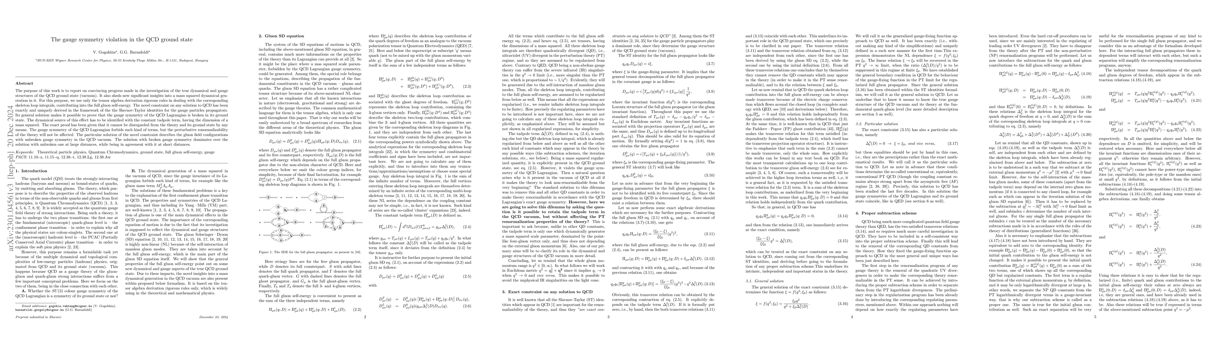 The main purpose of this work is to report on convincing progress made in the investigation of the one of the long-standing conceptual problems in QCD, namely whether the gauge symmetries of the QCD Lagrangian and its ground state coincide or not? For this purpose, we use only the tensor algebra derivation rigorous rules in dealing with the corresponding skeleton loop integrals, contributing into the full gluon self-energy. It has been exactly (i.e., without making any kind of the simplifications) proven that in the QCD ground state may exist the two principally different types of the gluon field configurations. One of them maintains the QCD Lagrangian's gauge symmetry, but another one does not.The dynamical source of this effect has to be identified with the constant tadpole term, having the dimension of a mass squared. The exact proof has been given that it cannot be disregarded from the theory and its ground state by any means. The gauge symmetry of the QCD Lagrangian forbids such term, but the perturbative renormalizability of the theory will not be affected. This allows to present the new significant insights into the gauge and dynamical structures of the true QCD ground state, and sheds light on a mass squared dynamical generation in it.