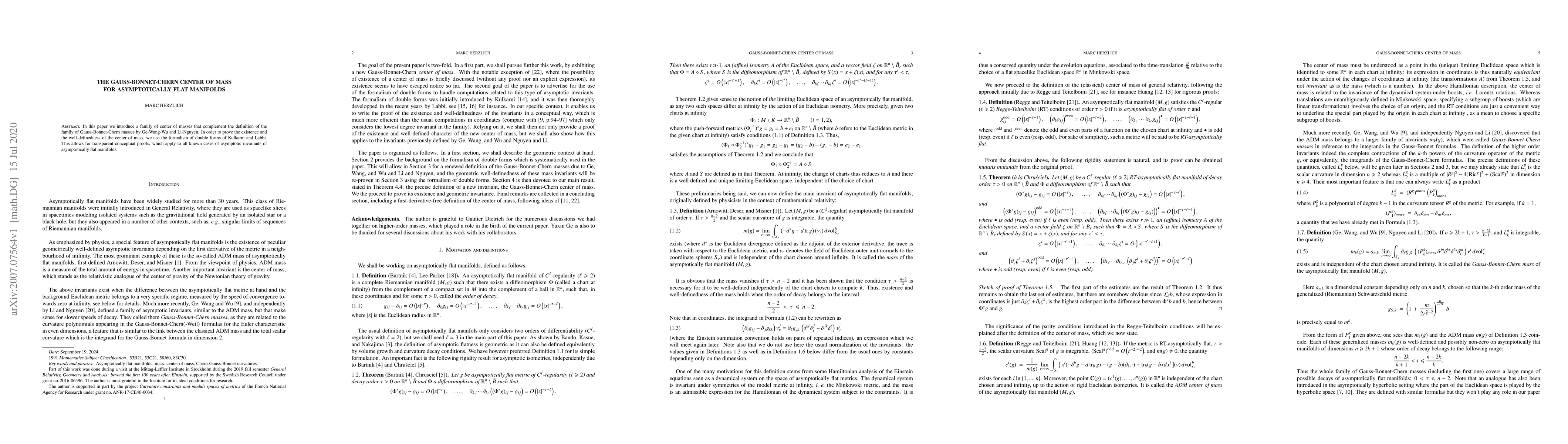 This paper introduces a new family of center of mass for asymptotically flat manifolds, complementing existing Gauss-Bonnet-Chern masses, and uses Kulkarni and Labbi's double form formalism to prove their existence and well-definedness, applicable to all known asymptotic invariants.
