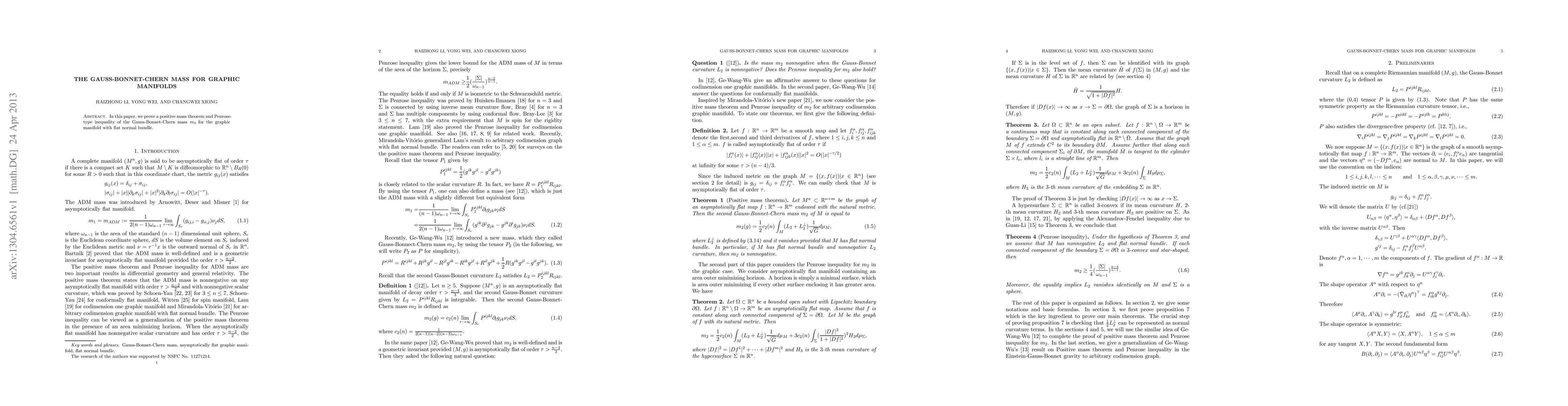 Summary: This paper establishes a positive mass theorem and a Penrose-type inequality for the Gauss-Bonnet-Chern mass $m_2$ in graphic manifolds with a flat normal bundle, contributing to the understanding of mass in geometric structures.