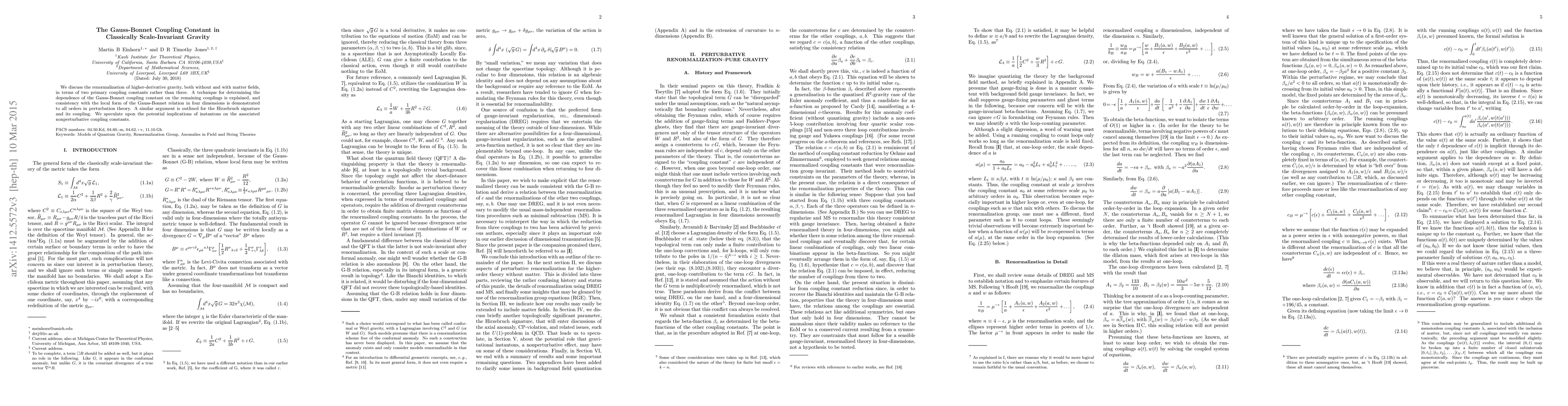 We discuss the renormalization of higher-derivative gravity, both without and with matter fields, in terms of two primary coupling constants rather than three. A technique for determining the dependence of the Gauss-Bonnet coupling constant on the remaining couplings is explained, and consistency with the local form of the Gauss-Bonnet relation in four dimensions is demonstrated to all orders in perturbation theory. A similar argument is outlined for the Hirzebruch signature and its coupling. We speculate upon the potential implications of instantons on the associated nonperturbative coupling constants.