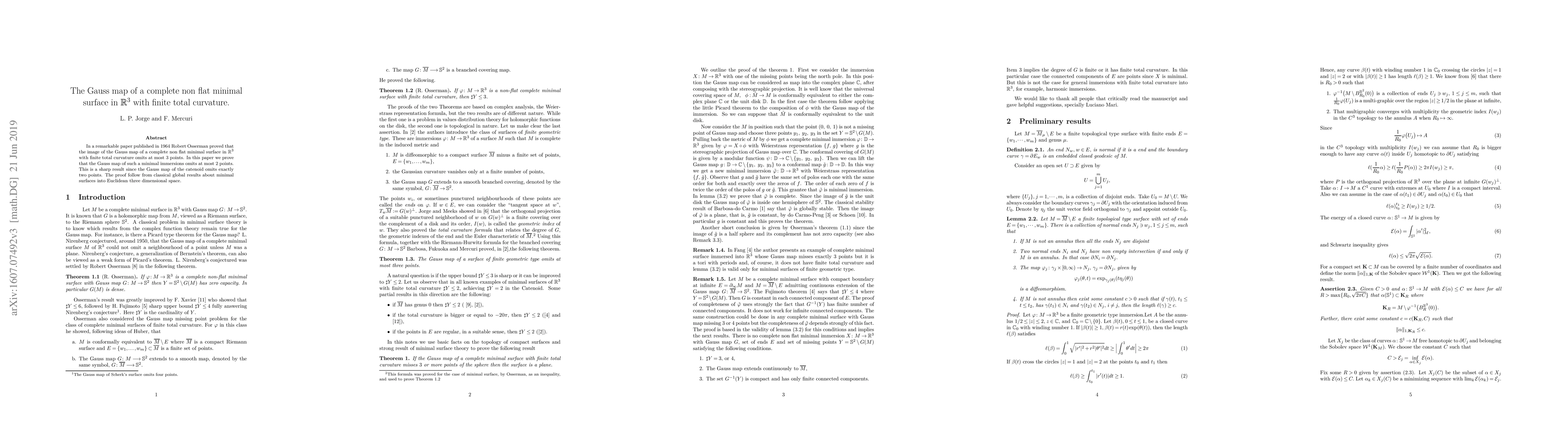 This paper refines Robert Osserman's result on the Gauss map of complete minimal surfaces in R^3, proving that such surfaces omit at most 2 points from their Gauss map, a sharp bound demonstrated by the catenoid. The result extends to a broader class of isometric immersions with similar differential topological properties.
