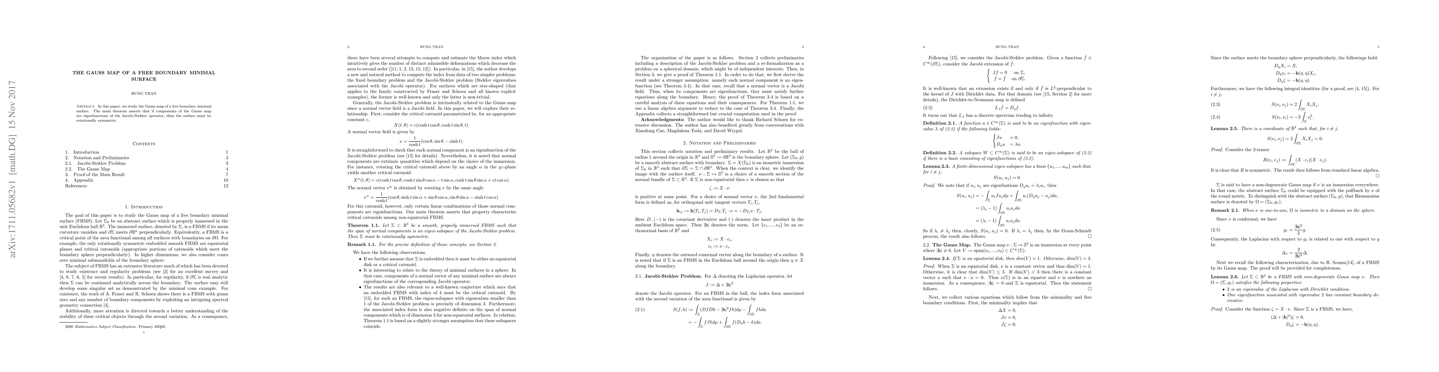 A new theorem states that if a minimal surface's Gauss map components are eigenfunctions of the Jacobi-Steklov operator, then the surface is rotationally symmetric.