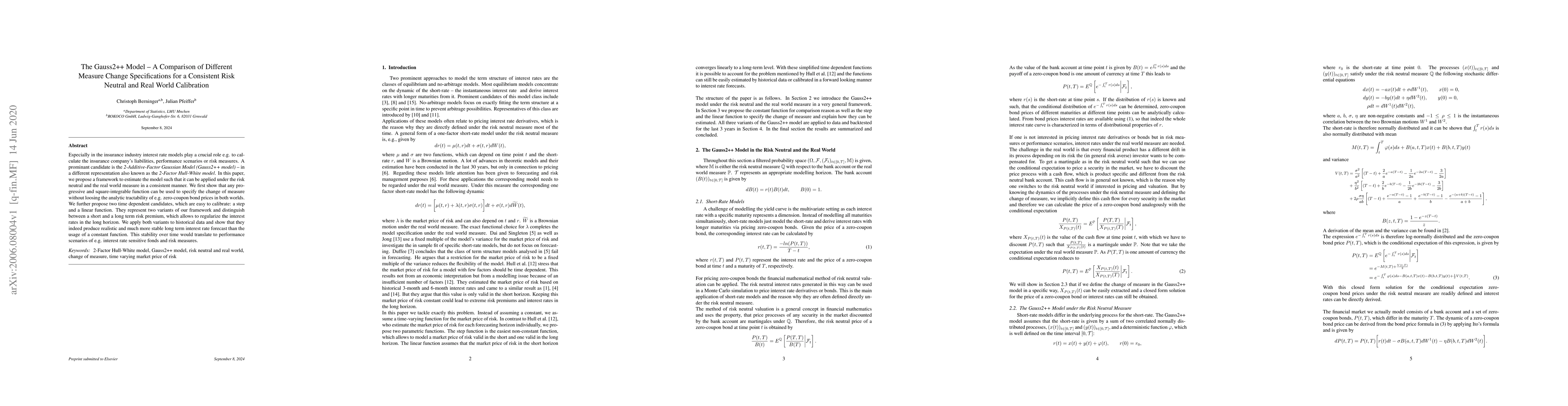 Especially in the insurance industry interest rate models play a crucial role e.g. to calculate the insurance company's liabilities, performance scenarios or risk measures. A prominant candidate is the 2-Additive-Factor Gaussian Model (Gauss2++) - in a different representation also known as the 2-Factor Hull-White model. In this paper, we propose a framework to estimate the model such that it can be applied under the risk neutral and the real world measure in a consistent manner. We first show that any progressive and square-integrable function can be used to specify the change of measure without loosing the analytic tractability of e.g. zero-coupon bond prices in both worlds. We further propose two time dependent candidates, which are easy to calibrate: a step and a linear function. They represent two variants of our framework and distinguish between a short and a long term risk premium, which allows to regularize the interest rates in the long horizon. We apply both variants to historical data and show that they indeed produce realistic and much more stable long term interest rate forecast than the usage of a constant function. This stability over time would translate to performance scenarios of e.g. interest rate sensitive fonds and risk measures.