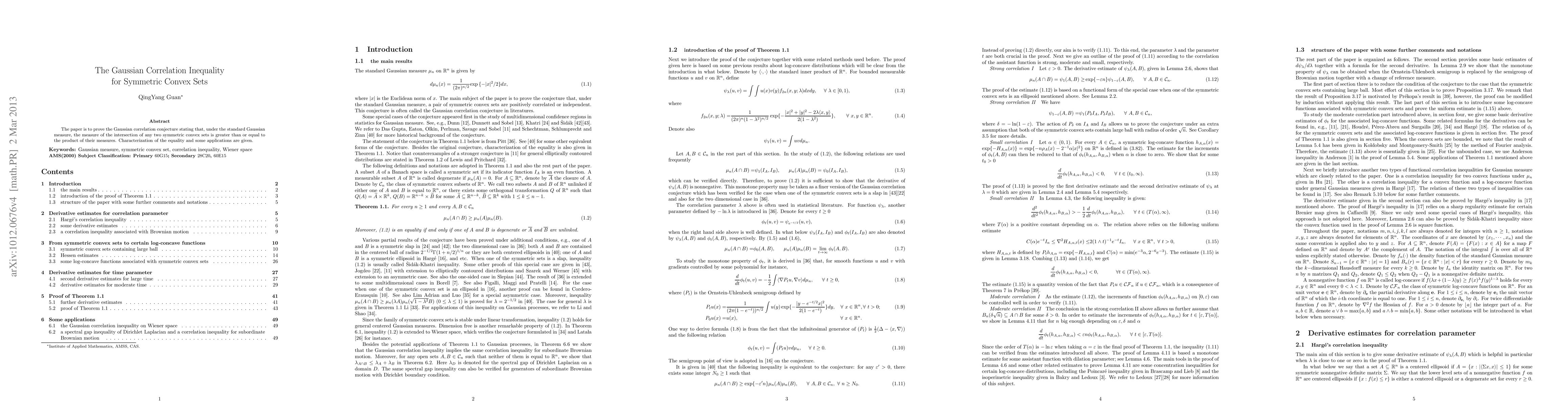 This paper proves the Gaussian correlation inequality for symmetric convex sets, stating that the measure of their intersection is greater than or equal to the product of their measures under the standard Gaussian measure.