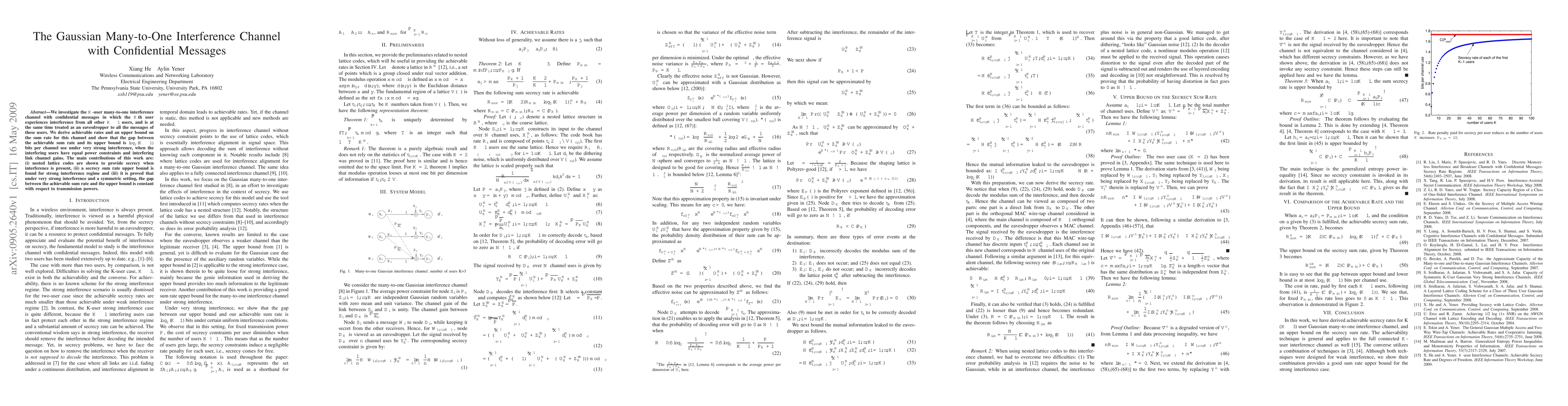 This paper explores the $K$-user many-to-one interference channel with confidential messages, deriving achievable rates and an upper bound on the sum rate. It demonstrates that under very strong interference, the gap between the achievable sum rate and its upper bound is $\log_2(K-1)$ bits per channel use, and proves that nested lattice codes provide secrecy in this context.