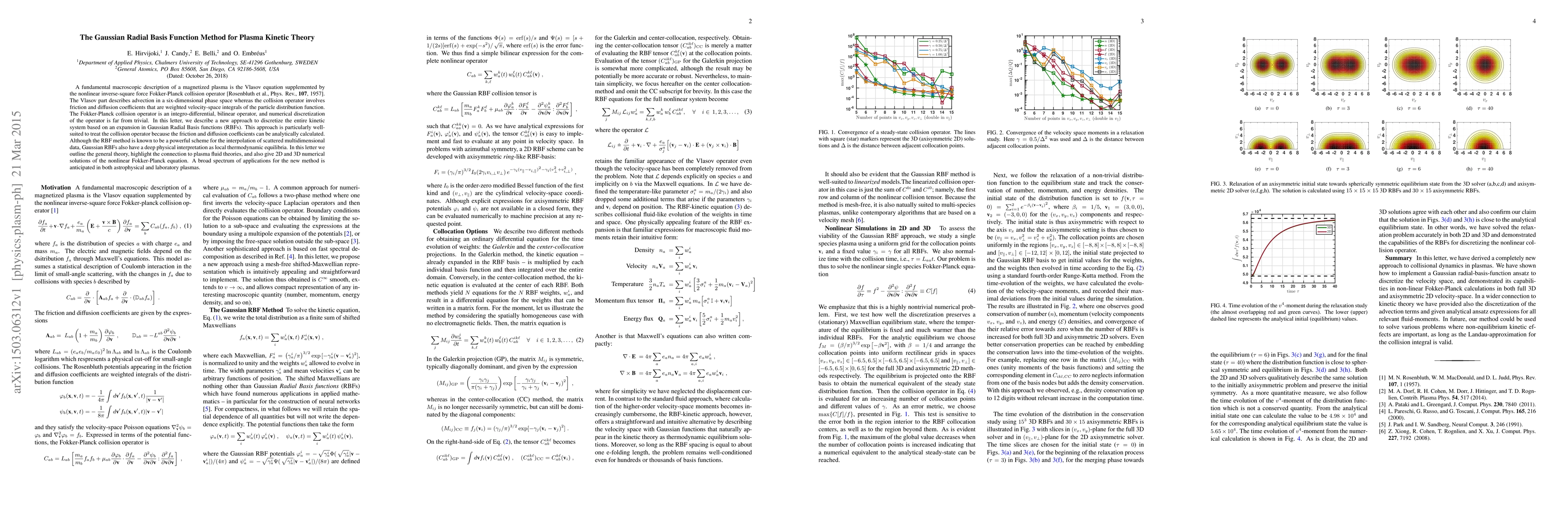 This research introduces a new method for numerically solving the Vlasov equation in plasma kinetic theory, using Gaussian Radial Basis Function (RBF) expansion. The approach simplifies discretization of the complex Fokker-Planck collision operator, offering advantages for treating friction and diffusion coefficients. It connects to plasma fluid theories and shows promise for applications in astrophysical and laboratory plasmas.