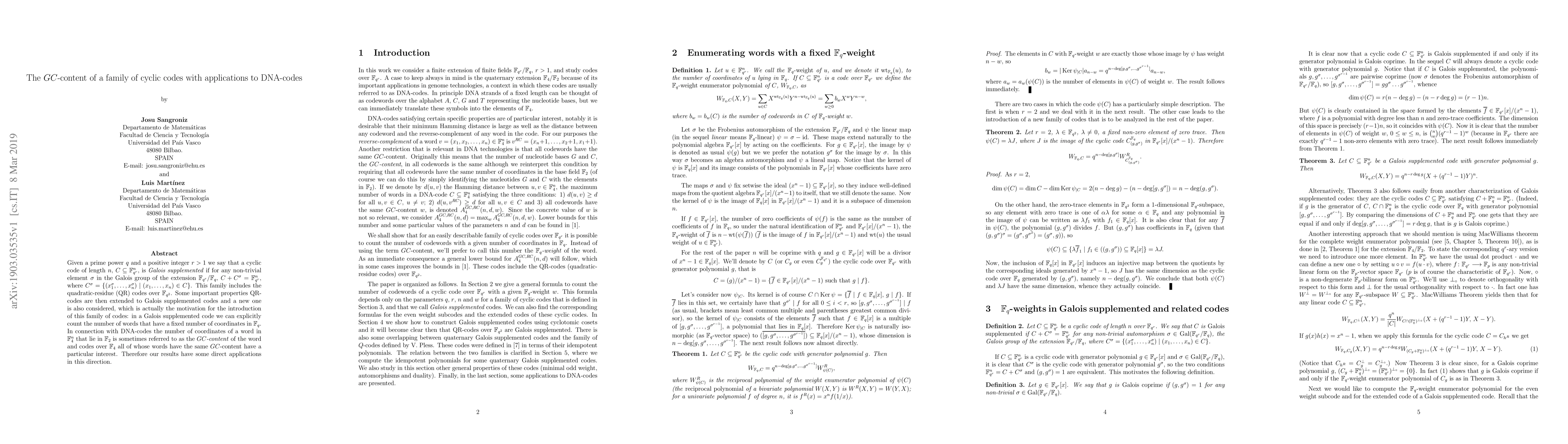 This paper explores Galois supplemented cyclic codes, extending properties of quadratic-residue codes to this new family, and focuses on counting the number of words with a fixed GC-content, which has direct applications to DNA-codes.