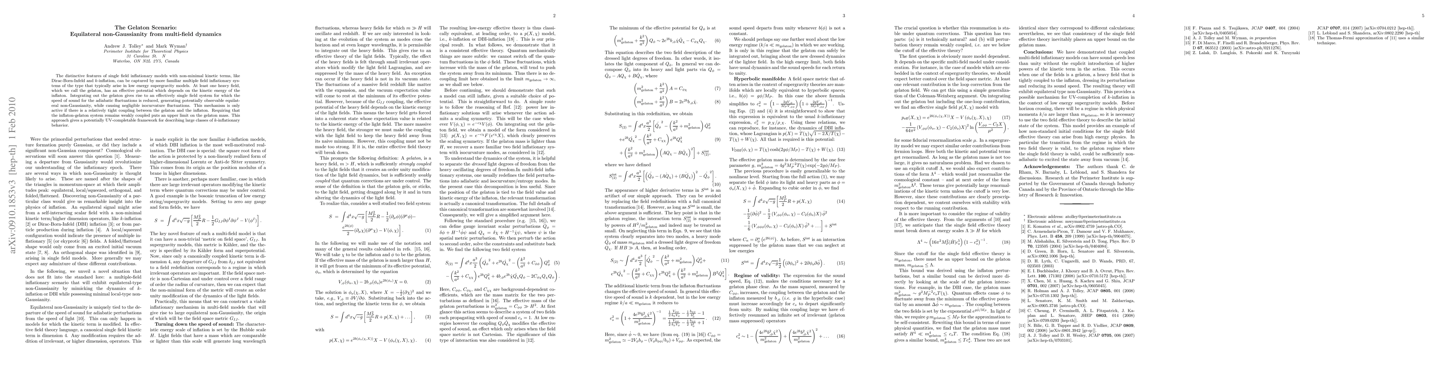 This paper explores a multi-field inflationary model featuring a "gelaton," a heavy field whose potential depends on the inflaton's kinetic energy, leading to reduced speed of sound and observable equilateral non-Gaussianity in the primordial fluctuations. The model provides a UV-complete framework for k-inflationary dynamics.