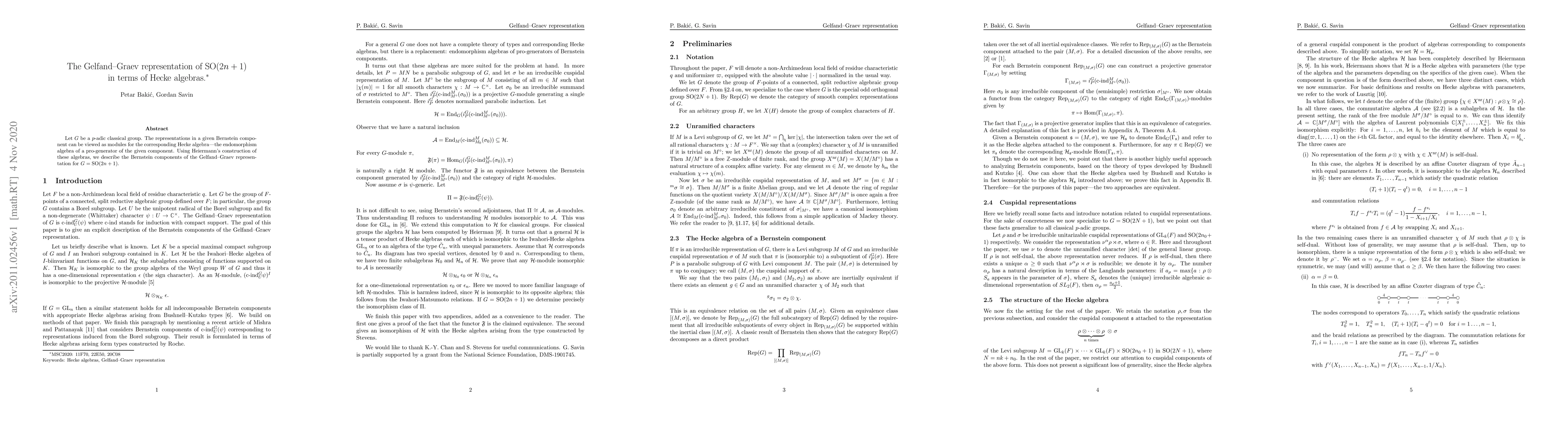 This paper describes how to represent the SO(2n+1) group using Hecke algebras, a mathematical tool for studying representations of groups, providing new insights into their Bernstein components.
