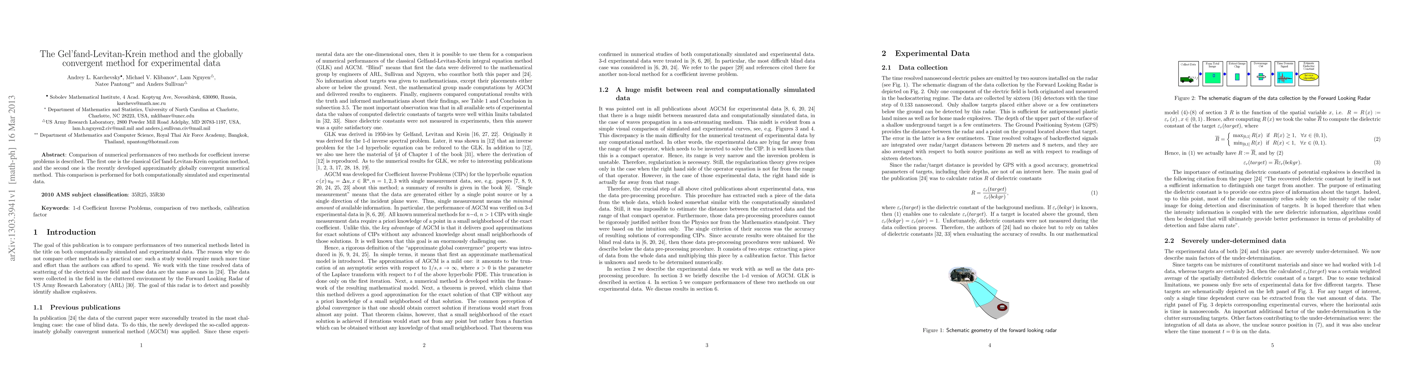 Comparison of numerical performances of two methods for coefficient inverse problems is described. The first one is the classical Gel'fand-Levitan-Krein equation method, and the second one is the recently developed approximately globally convergent numerical method. This comparison is performed for both computationally simulated and experimental data.