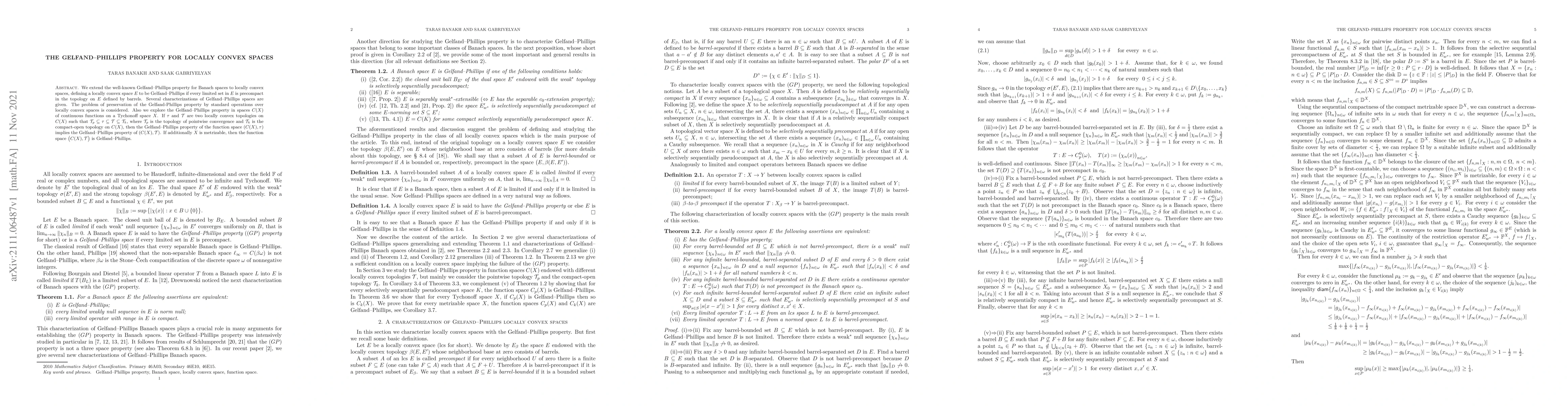 This paper extends the Gelfand-Phillips property from Banach spaces to locally convex spaces, defining such spaces as those where every limited set is precompact. It also investigates the preservation of this property under standard operations and in function spaces, showing that it holds for metrizable Tychonoff spaces.