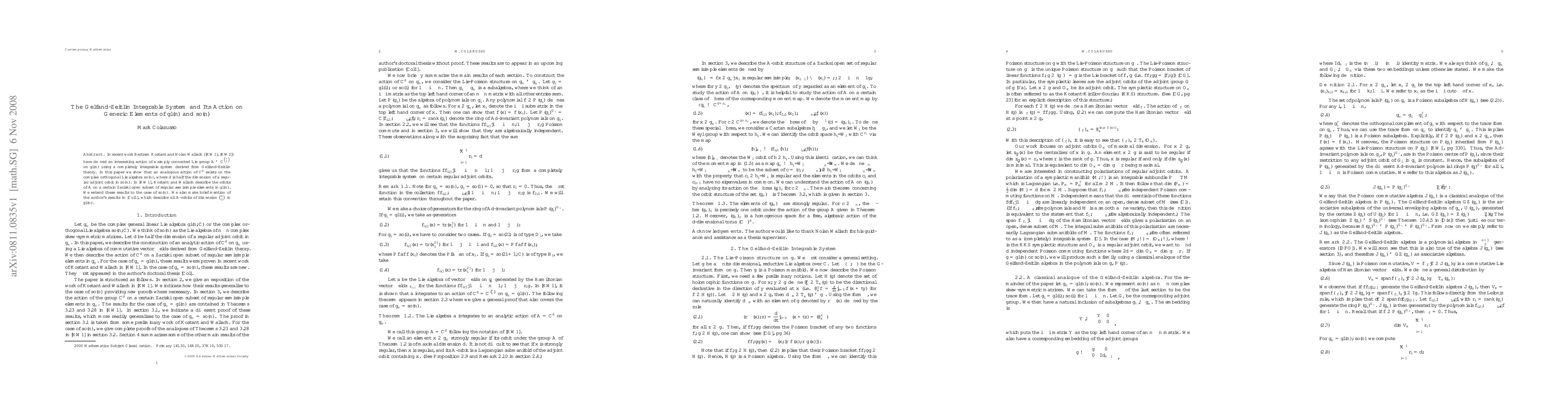 In recent work Bertram Kostant and Nolan Wallach ([KW1], [KW2]) have defined an interesting action of a simply connected Lie group $A$ isomorphic to \mathbb{C}^{{n\choose 2}} on gl(n) using a completely integrable system derived from Gelfand-Zeitlin theory. In this paper we show that an analogous action of \mathbb{C}^{d} exists on the complex orthogonal Lie algebra so(n), where d is half the dimension of a regular adjoint orbit in so(n). In [KW1], Kostant and Wallach describe the orbits of $A$ on a certain Zariski open subset of regular semisimple elements in gl(n). We extend these results to the case of so(n). We also make brief mention of the author's results in [Col1], which describe all $A$-orbits of dimension {n\choose 2} in gl(n).