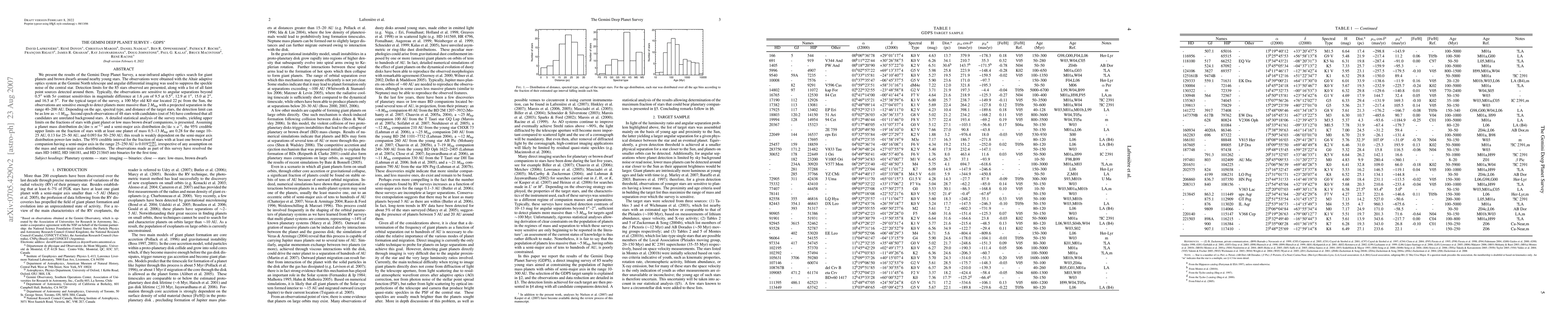 We present the results of the Gemini Deep Planet Survey, a near-infrared adaptive optics search for giant planets and brown dwarfs around nearby young stars. The observations were obtained with the Altair adaptive optics system at the Gemini North telescope and angular differential imaging was used to suppress the speckle noise of the central star. Detection limits for the 85 stars observed are presented, along with a list of all faint point sources detected around them. Typically, the observations are sensitive to angular separations beyond 0.5" with 5-sigma contrast sensitivities in magnitude difference at 1.6 micron of 9.5 at 0.5", 12.9 at 1", 15.0 at 2", and 16.5 at 5". For the typical target of the survey, a 100 Myr old K0 star located 22 pc from the Sun, the observations are sensitive enough to detect planets more massive than 2 Mjup with a projected separation in the range 40-200 AU. Second epoch observations of 48 stars with candidates (out of 54) have confirmed that all candidates are unrelated background stars. A detailed statistical analysis of the survey results, yielding upper limits on the fractions of stars with giant planet or low mass brown dwarf companions, is presented. Assuming a planet mass distribution dN/dm m^{-1.2} and a semi-major axis distribution dN/da a^{-1}, the 95% credible upper limits on the fraction of stars with at least one planet of mass 0.5-13 Mjup are 0.28 for the range 10-25 AU, 0.13 for 25-50 AU, and 0.093 for 50-250 AU. The 95% credible interval for the fraction of stars with at least one brown dwarf companion having a semi-major axis in the range 25-250 AU is 0.019 (-0.015/+0.083), irrespective of any assumption on the mass and semi-major axis distributions. The stars HD 14802, HD 166181, and HD 213845 have been resolved into binaries for the first time.