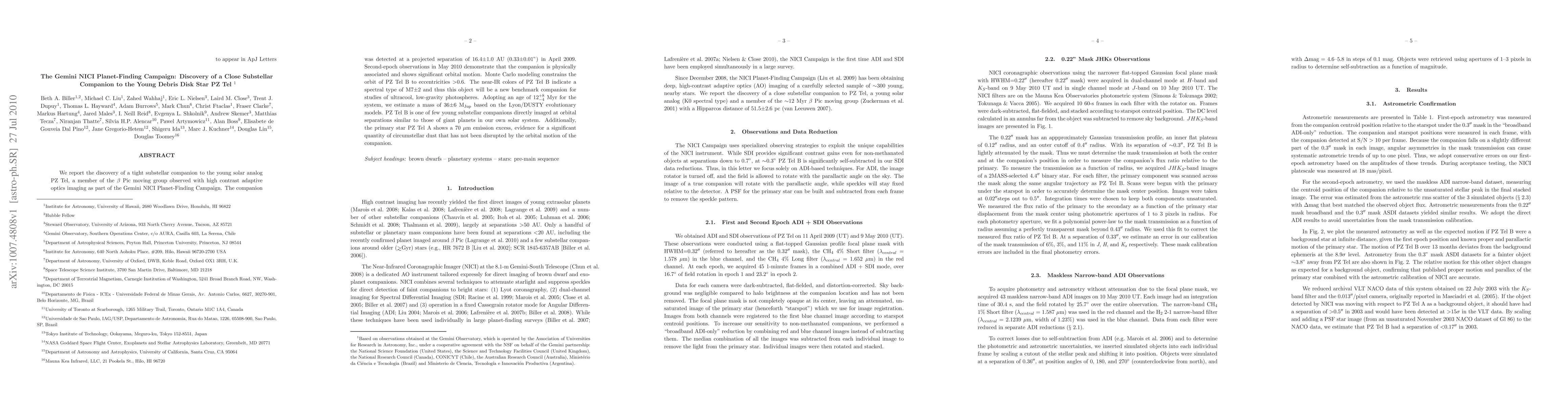 The Gemini NICI Planet-Finding Campaign discovered a substellar companion, PZ Tel B, to the young star PZ Tel, showing significant orbital motion and estimated to be an M7 spectral type object at 16.4 AU. The companion's mass is estimated at 36 Mjup, making it a benchmark for ultracool, low-gravity photospheres.