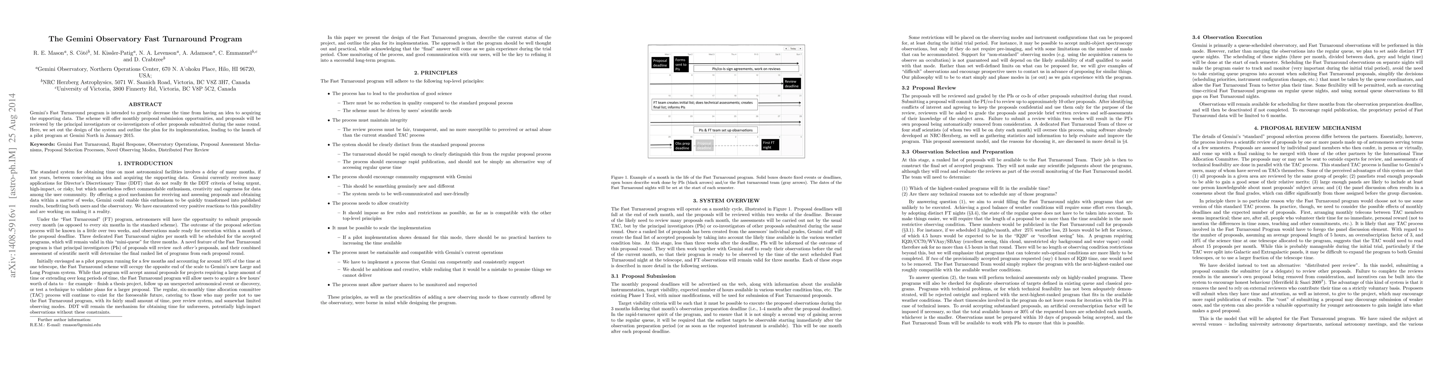 Gemini's Fast Turnaround program is intended to greatly decrease the time from having an idea to acquiring the supporting data. The scheme will offer monthly proposal submission opportunities, and proposals will be reviewed by the principal investigators or co-investigators of other proposals submitted during the same round. Here, we set out the design of the system and outline the plan for its implementation, leading to the launch of a pilot program at Gemini North in January 2015.