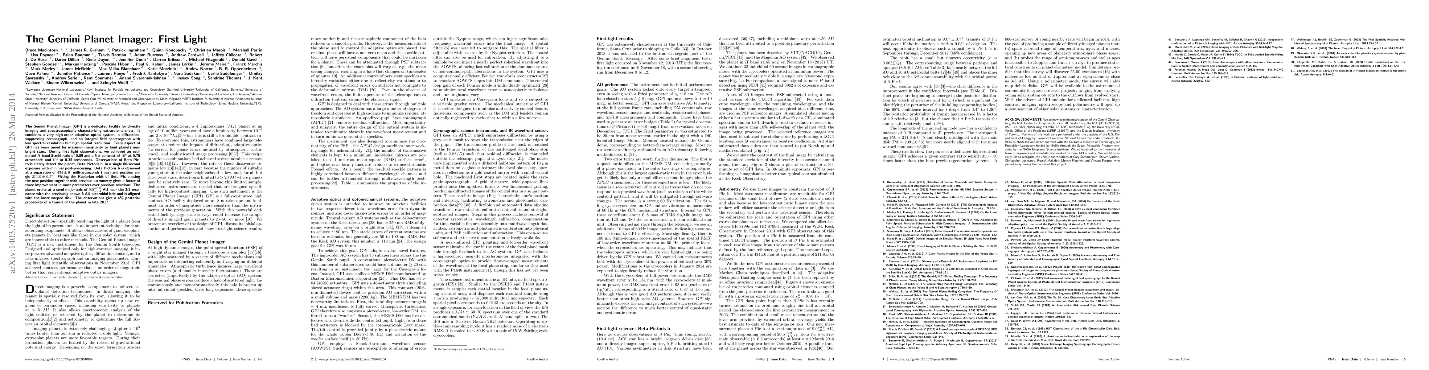 The Gemini Planet Imager (GPI) achieved first light with high sensitivity, detecting Beta Pictoris b in a single exposure, confirming its orbit and improving parameters significantly. The planet orbits at 9.0 AU, near a 3:2 resonance with the inner disk.