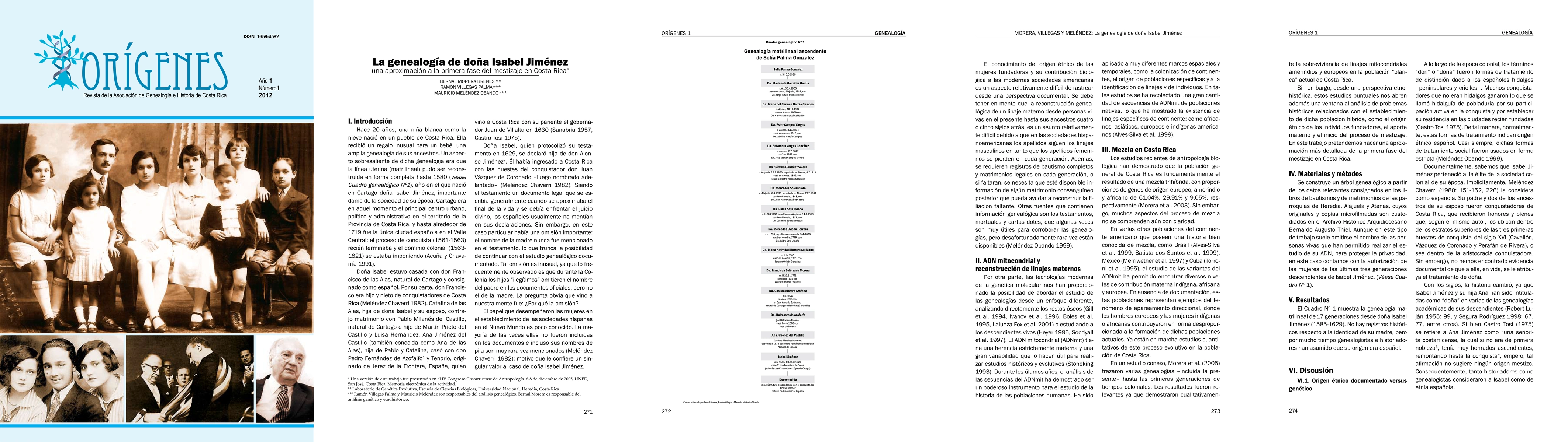 Traditionally the Costa Rican historians and genealogists have interpreted that the Spanish ruling elite emerged after the conquest was exclusively of European origin. On the other side, recent technological advances in Genetics give us the opportunity to approach the study of pedigrees from a new perspective, examining alive people and simultaneously collating the historical information of their ancestors. In this paper, a complete matrilineal genealogy was reconstructed from nowadays "white" Costa Ricans to their ancestors in the early Colonial society (XVI century). It was compared the correlation between ethnic affiliations deduced from historical records with the genetic inheritance from maternal lineages. The MtDNA lineage observed corresponds to a Native American ancestry. These results show that some Amerindian gene flow into the Spanish group must have occurred since the first generation of Colonial society, a finding that contrasts with the prevailing ideas that the Spanish elite avoided the intermarriage with other ethnic groups. Examples like this one confirm that miscegenation began early in Costa Rica. So, those who considered themselves "Spaniards" in the late colonial era, were actually biologically mestizos. It is widely accepted, that the general Costa Rican population is the result of an admixture process between Europeans, Amerindians and Africans.