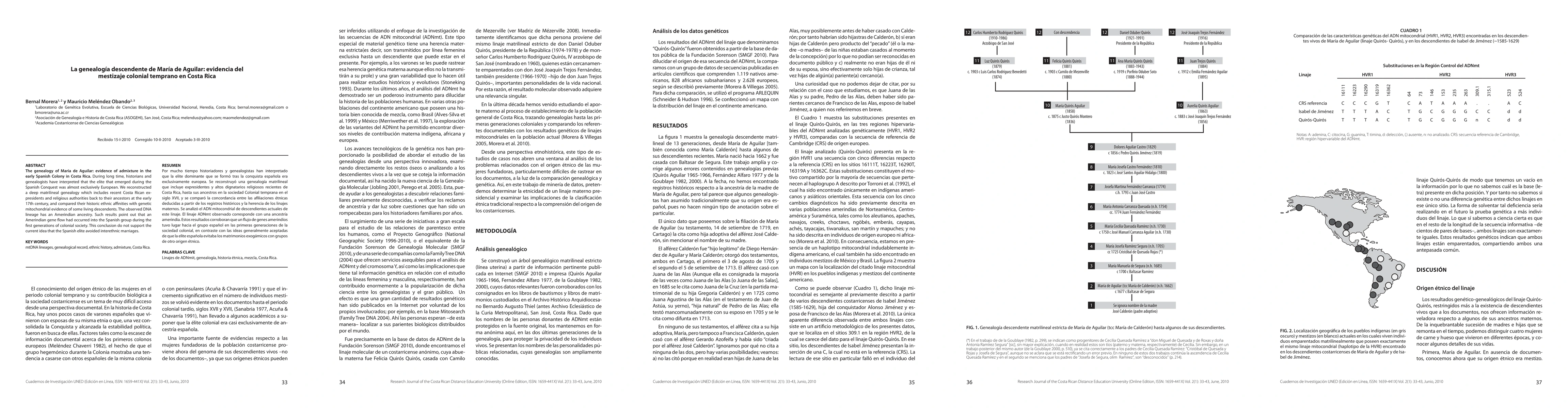 During long time, historians and genealogists have interpreted that the elite that emerged during the Spanish Conquest was almost exclusively European. We reconstructed a deep matrilineal genealogy which includes recent Costa Rican ex-presidents and religious authorities back to their ancestors at the early 17th century, and compared their historic ethnic affinities with genetic mitochondrial evidence of some living descendents. The observed DNA lineage has an Amerindian ancestry. Such results point out that an Amerindian gene flow had occurred into the Spanish group during the first generations of colonial society. This conclusion do not support the current idea that the Spanish elite avoided interethnic marriages.