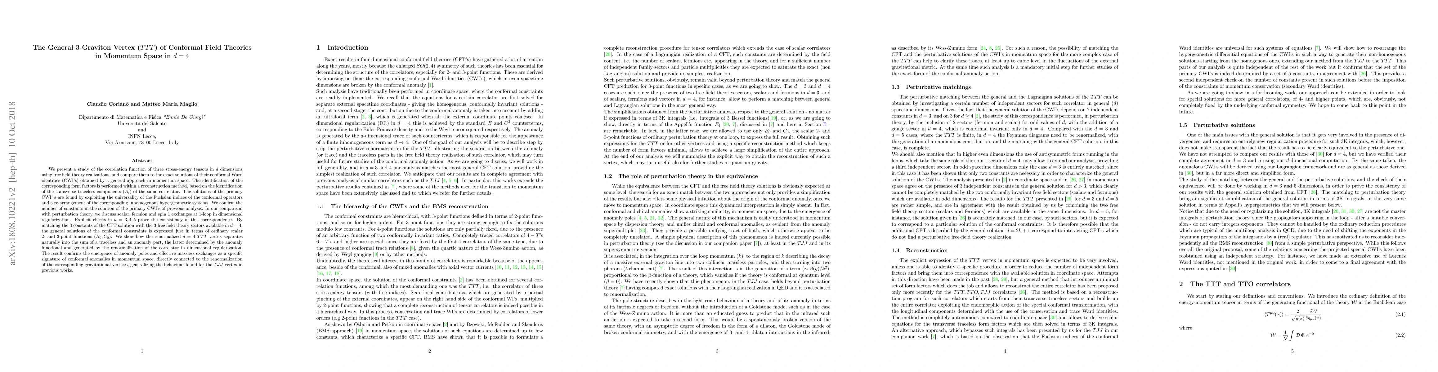 Researchers study the correlation function of three stress-energy tensors in 4 dimensions using free field theory and conformal Ward identities, finding a general 3-Graviton Vertex that separates into traceless and anomaly parts, confirming the emergence of anomaly poles and effective massless exchanges.
