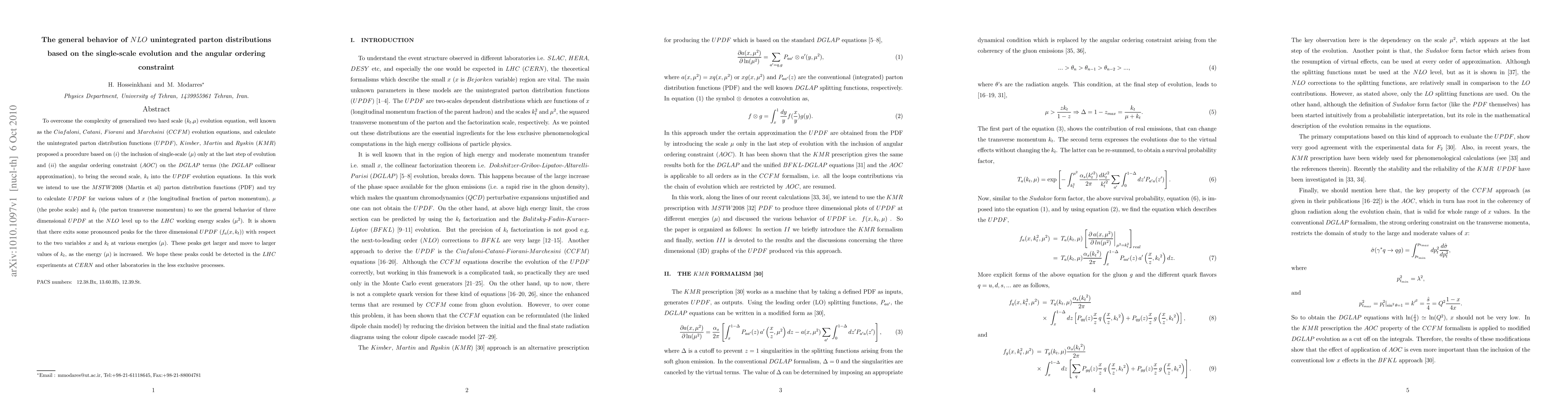 This paper proposes a simplified method to calculate unintegrated parton distribution functions (UPDF) using single-scale evolution and angular ordering constraints. The results show pronounced peaks in the three-dimensional UPDF at the NLO level, which grow and shift with increasing energy, potentially detectable in LHC experiments.