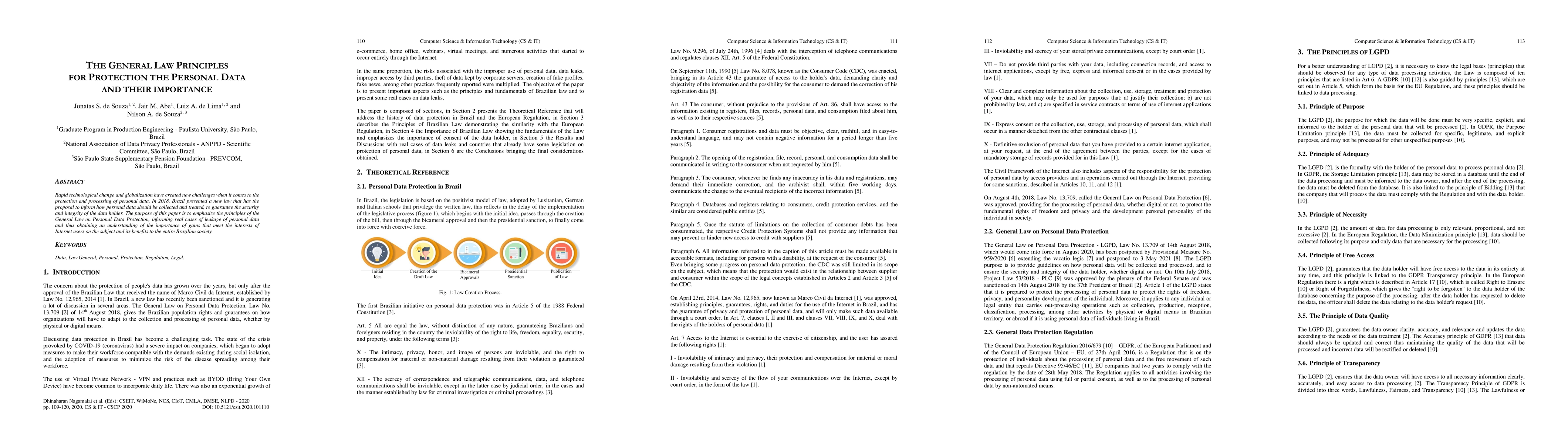 This paper discusses Brazil's 2018 General Law on Personal Data Protection, emphasizing its principles to secure and manage personal data amidst technological advancements. It highlights real data breaches to underscore the law's importance and its benefits for both internet users and Brazilian society.