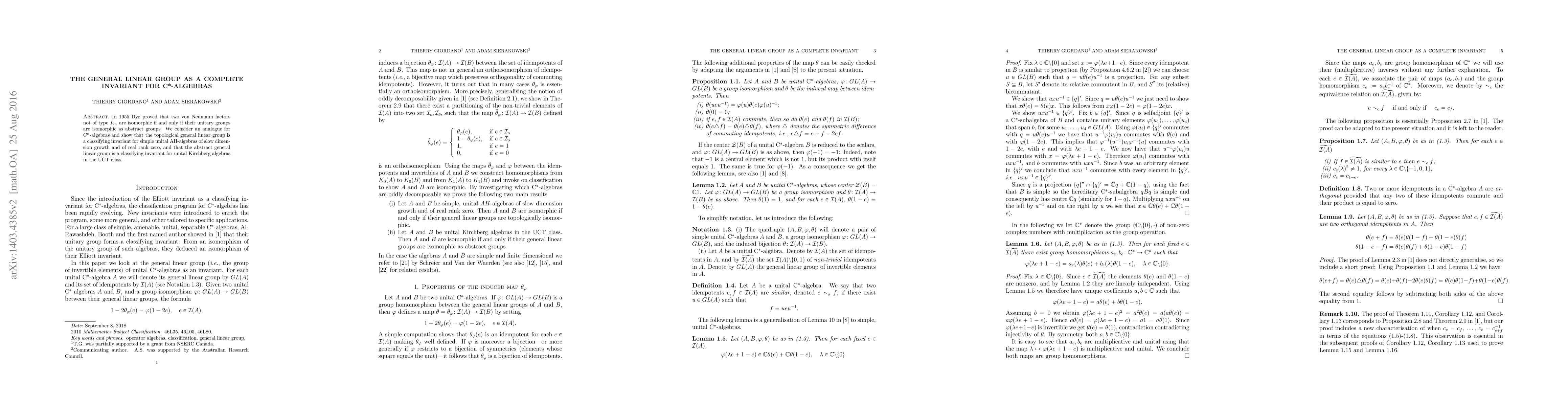 In 1955 Dye proved that two von Neumann factors not of type I_2n are isomorphic (via a linear or a conjugate linear *-isomorphism) if and only if their unitary groups are isomorphic as abstract groups. We consider an analogue for C*-algebras. We show that the topological general linear group is a classifying invariant for simple, unital AH-algebras of slow dimension growth and of real rank zero, and the abstract general linear group is a classifying invariant for unital Kirchberg algebras in the UCT class.